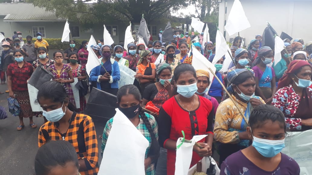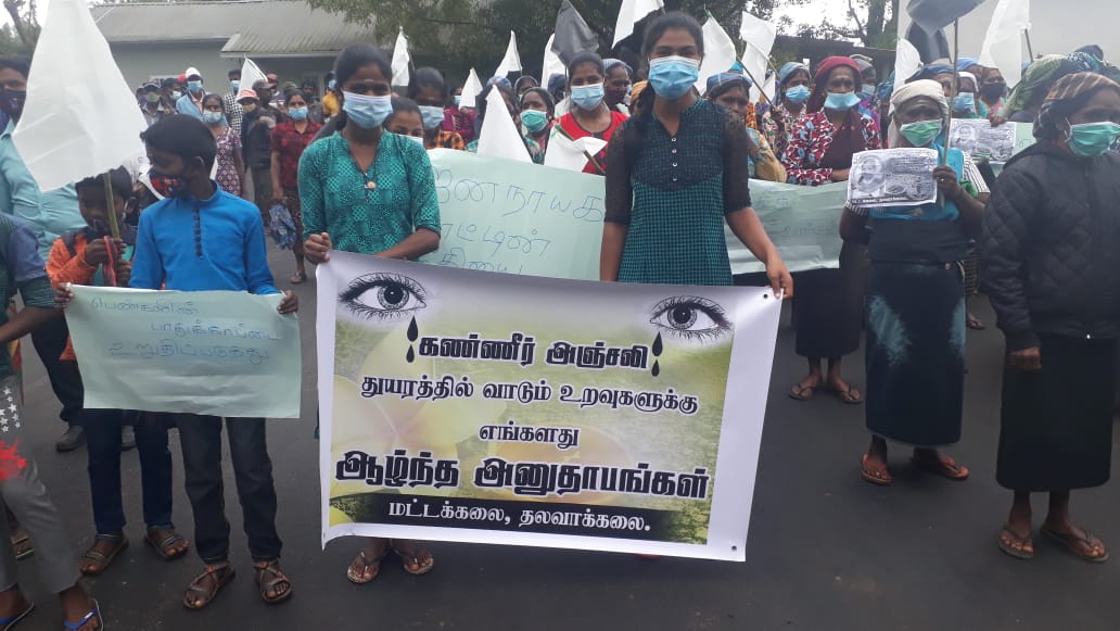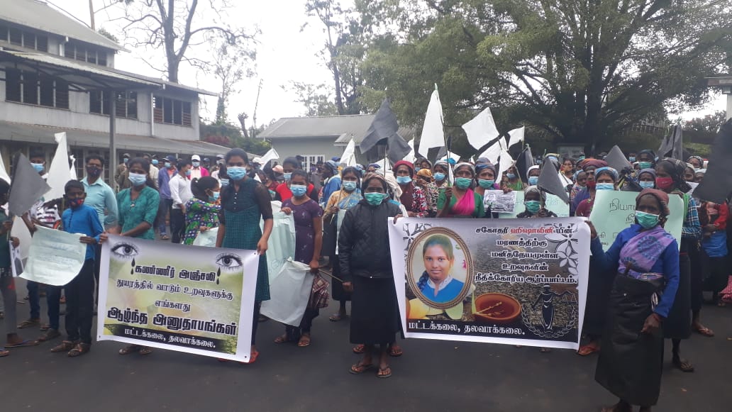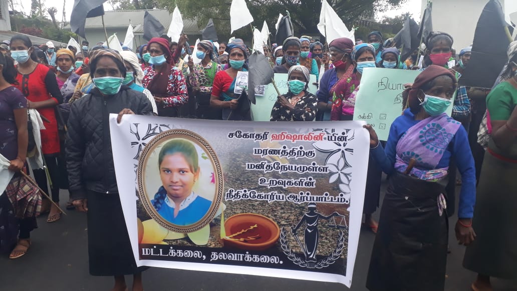 டயகம சிறுமி ஹிஷாலினிக்கு நீதி கிடைக்க வேண்டும் என்ற கோஷத்துடன் இன்று (02.08.2021) காலை பணிக்கு செல்லாது லிந்துலை மட்டுக்கலை தோட்டத் தொழிலாளர்கள் கவனயீர்ப்பு போராட்டத்தில் ஈடுபட்டனர்.