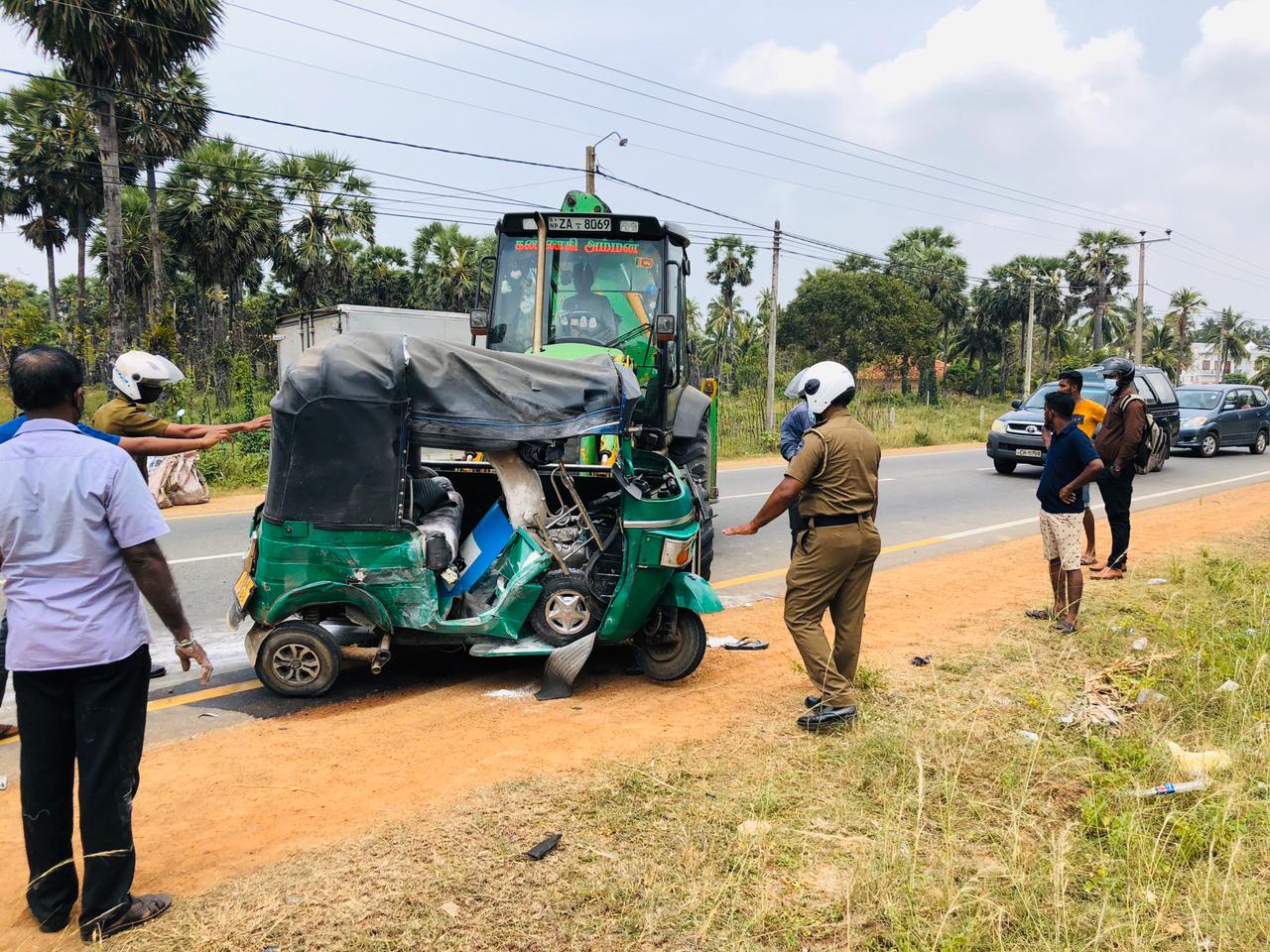 யாழ்ப்பாணம் - கண்டி நெடுஞ்சாலையில், கொடிகாமம், இராமாவில் பகுதியில் இன்று நண்பகல் இந்த விபத்து இடம்பெற்றுள்ளது.