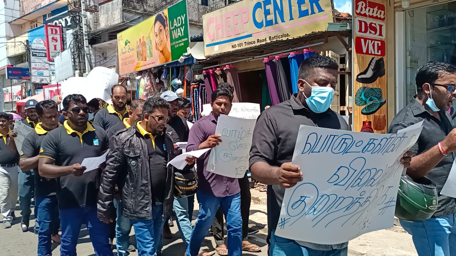 இவ்வாறு ஒன்றிணைந்தவர்கள் கோட்டா கோ கோம், வெளிநாட்டு கறுப்பு சந்தை மாபியாவை தடைசெய்க, அவசரகால சட்டத்தை நீக்கு, அதிகரிக்கும் வாழ்க்கை செலவை குறை, போன்ற பல்வேறு வாசகங்கள் ஏந்தியவாறு கோஷங்கள் எழுப்பியவாறு ஊர்வலமாக காந்திப்பூங்காவலில் இருந்து ஆரம்பித்து கோட்டமுனை பாலம் ஊடாக மட்டு தலைமையக பொலிஸ் நிலைய வீதி சுற்றுவட்டத்தை சென்று அங்கிருந்து மீண்டும் காந்தி பூங்காவை வந்தடைந்தது.