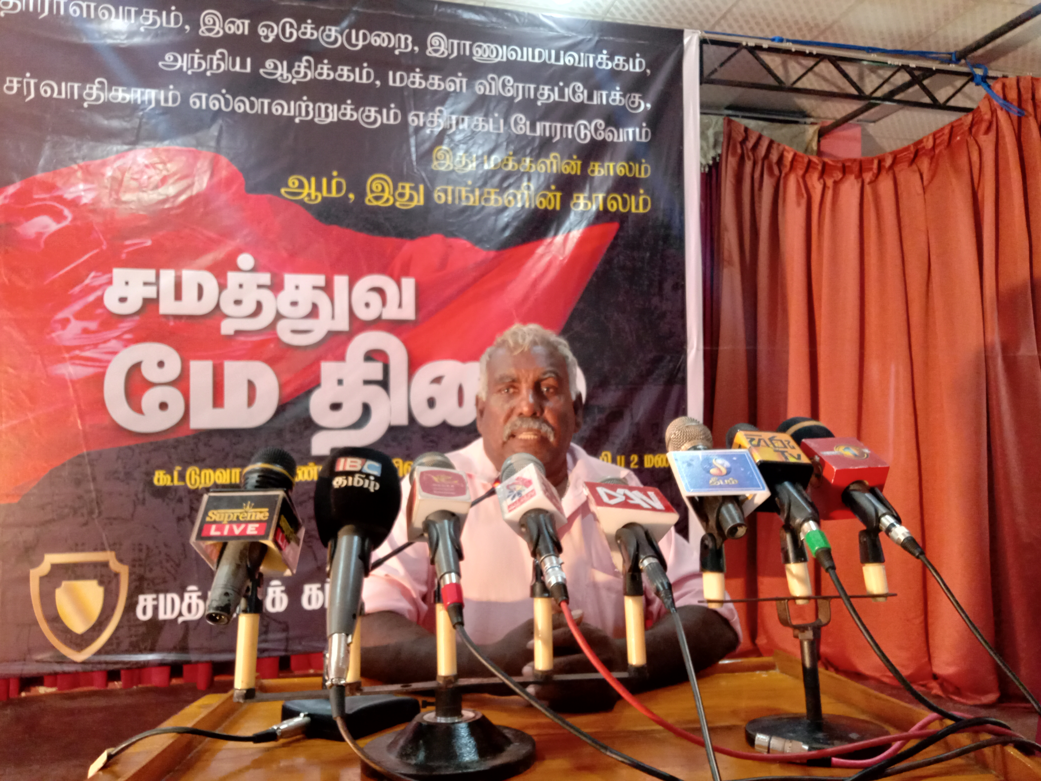 தாரளவாதம், இன ஒடுக்குமுறை, இராணுவமயவாக்கம், அந்நிய ஆதிக்கம், மக்கள் விரோத போக்கு, சர்வதிகாரம், எல்லாவற்றுக்கும் எதிராக போராடுவோம் இது மக்களின் காலம் என்ற பிரதான கோசத்துடன் சமத்துவக் கட்சியின் மே தினம் நடாத்தப்பட்டுள்ளது.
