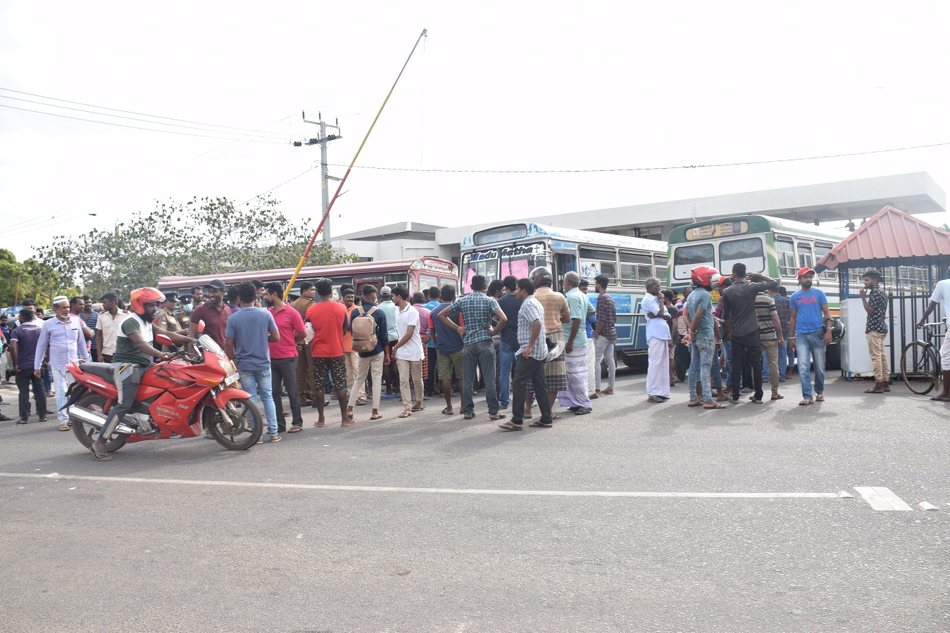 இந்த நிலையில் இன்று (5) காலை முதல் தனியார் பேருந்துகள் பணிப்பகிஸ்கரிப்பில் ஈடுபட்டதோடு,அரச போக்குவரத்து சேவையை மேற்கொள்ள முடியாத வகையில் தனியார் பேருந்துகளினால் வீதியை மறித்து போராட்டத்தில் ஈடுபட்டதோடு தமக்கான எரிபொருளையும் வழங்க கோரிக்கை விடுத்தனர்.