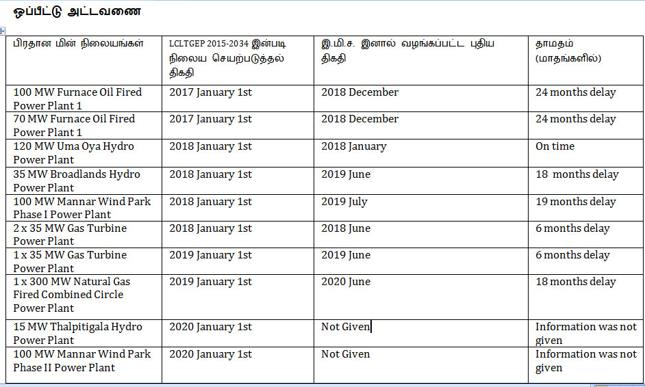 ஆயினும், இலங்கை மின்சார சபையால் பொதுப் பயன்பாடுகள் ஆணைக்குழுவுடன் ஆற்றப்பட்ட அண்மைய தொடர்பாடலில், அனுமதிக்கப்பட்ட திட்டத்தை நடைமுறைப்படுத்துவதில் அதீத கால தாமதம் இருப்பதை காணக்கூடியதாக இருந்தது.