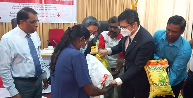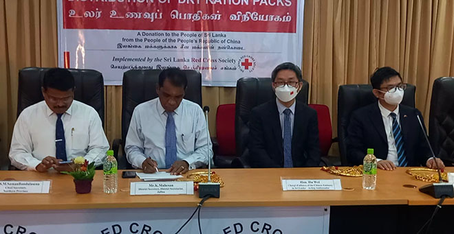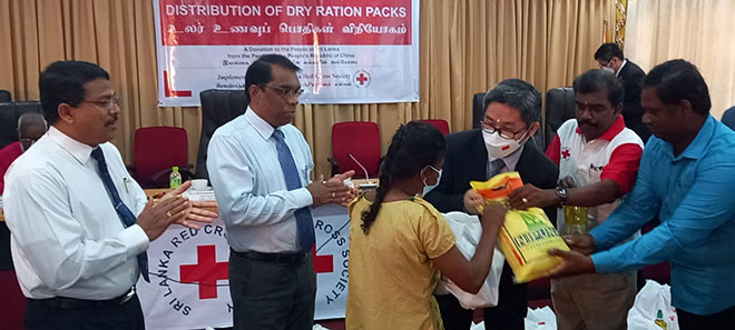 இலங்கை செஞ்சிலுவைச் சங்கத்தினால் முன்னெடுக்கப்பட்டுவரும் இந்நிகழ்வில் இலங்கைக்கான சீனாவின் பிரதித் தூதர் ஹுவெய் கலந்துகொண்டு உலர் உணவுப் பொதிகளை வழங்கிவைத்தார்.