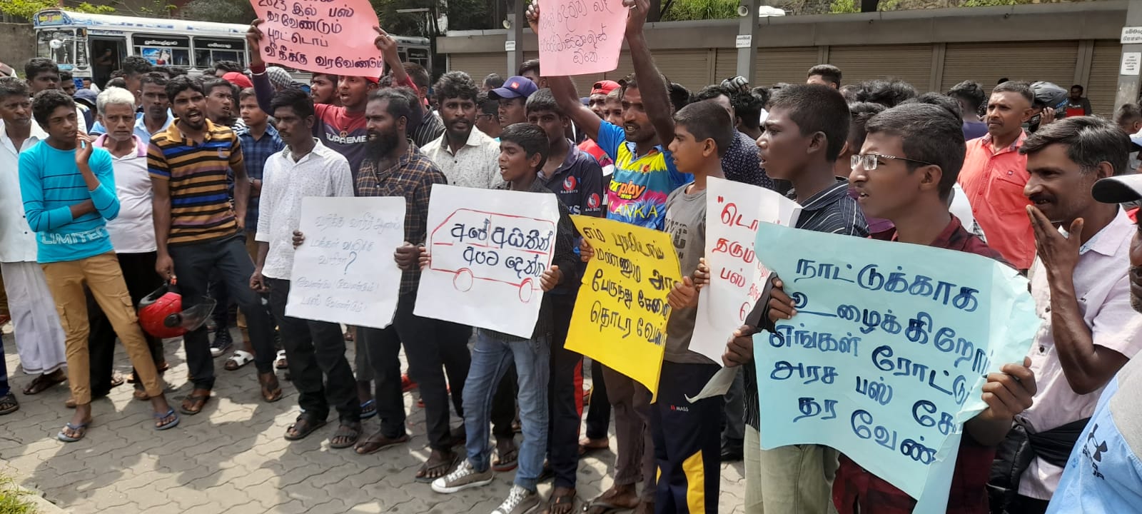 பெரட்டாசி வீதி ஊடாக பேரணியாக வந்த மக்கள், கெமுனுபுர சந்தியை வந்தடைந்த பின்னர் போராட்டத்தை முன்னெடுத்தனர். உடனடியாக இ.போ.ச பஸ் சேவை ஆரம்பிக்கப்பட வேண்டும் என இடித்துரைத்தனர்.