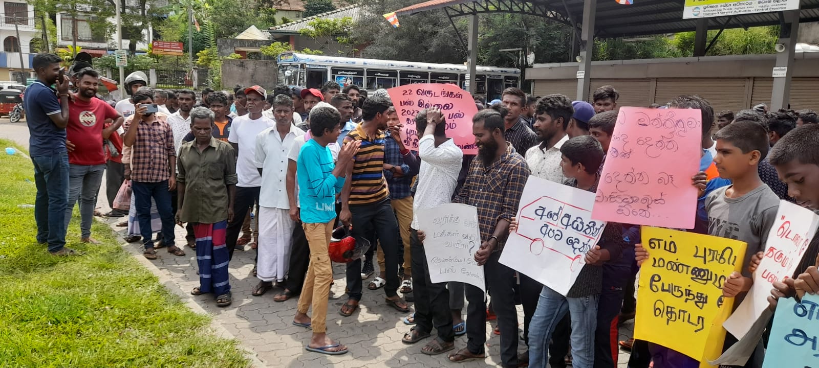 எனினும், கண்டி மாவட்ட நாடாளுமன்ற உறுப்பினர் ஒருவரின் தலையீட்டால் பஸ் சேவை இடைநிறுத்தப்பட்டுள்ளது. இது அனுமதிக்க முடியாத செயல் என போராட்டத்தில் பங்கேற்றோர் கோஷங்களை எழுப்பினர். அத்துடன், தமது கண்டனங்களையும் வெளியிட்டுள்ளனர்.