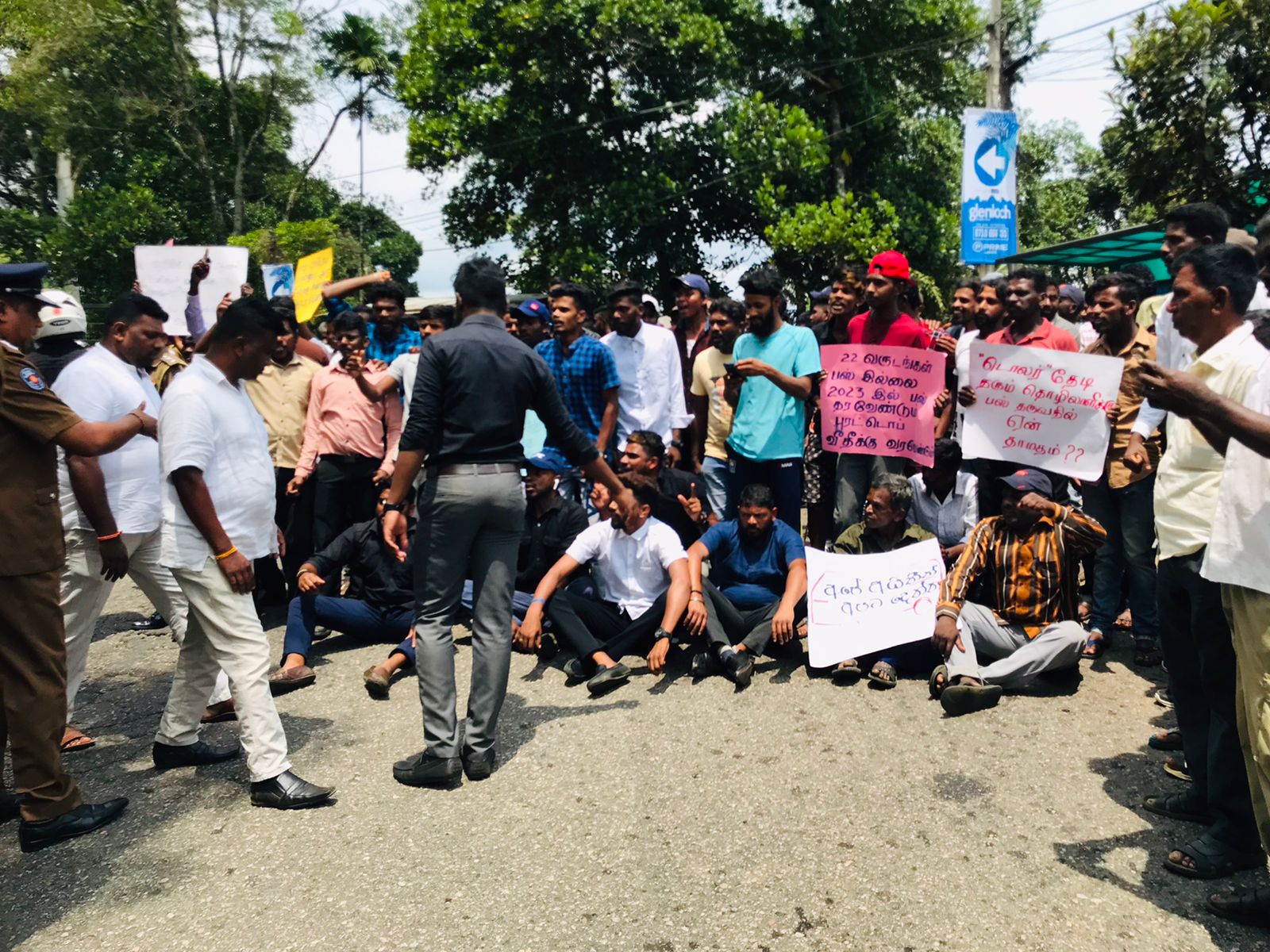 புசல்லாவை, கெமுனுபுர சந்தியில் இன்று (05) முற்பகல் இடம்பெற்ற இப்போராட்டத்தில் தோட்ட மக்கள், ஆசிரியர்கள், மாணவர்கள், இளைஞர்கள் என பலரும் பங்கேற்றனர்.