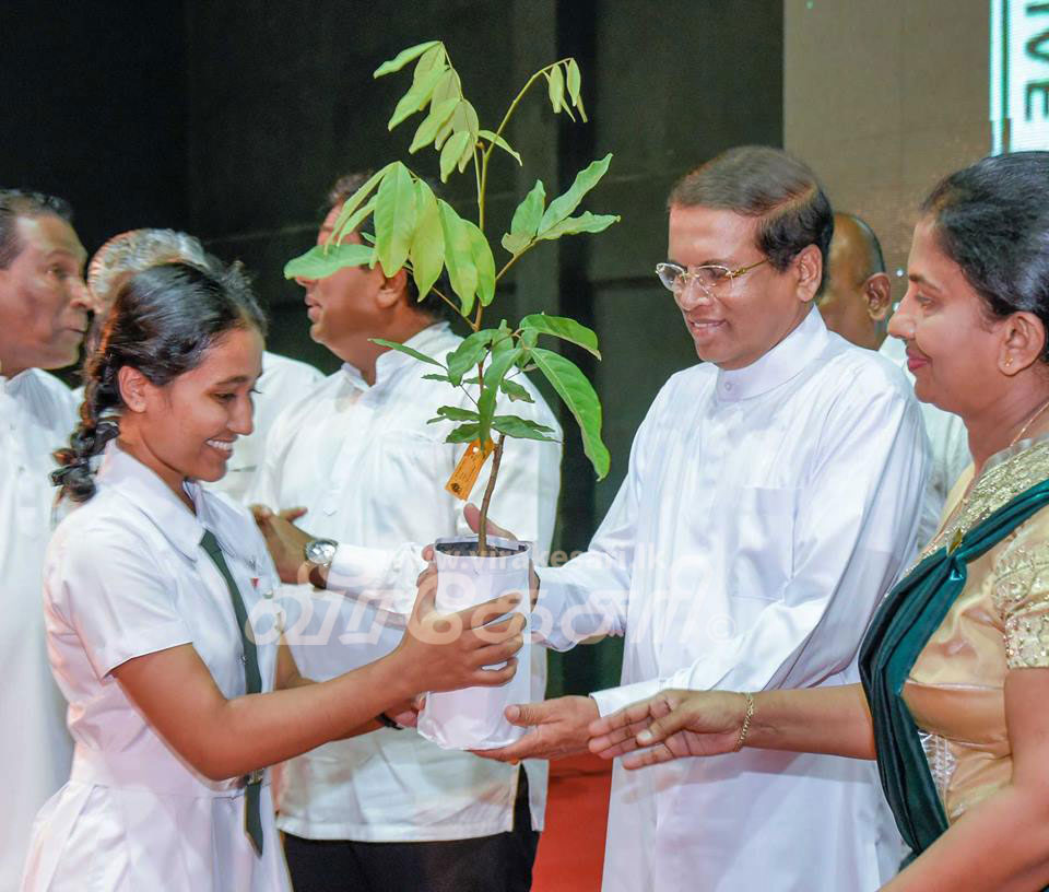 பேண்தகு பாடசாலை செயற்திட்டத்தின் கீழ் 4000 பழமரக் கன்றுகளை நடுகைசெய்யும் திட்டத்தின் அடையாளமாக பழமரக் கன்று ஒன்றையும், சுற்றாடல் பாதுகாப்புக்காக சுற்றாடல் அமைச்சினால் தயாரிக்கப்பட்ட நாட்டிலுள்ள பாடசாலைகளில் காட்சிப்படுத்துவதற்கான காட்சிப்படுத்தல்களை வழங்கி வைப்பதன் அடையாளமாக முதலாவது அறிவித்தல் பலகையை ஜனாதிபதி வழங்கினார்.