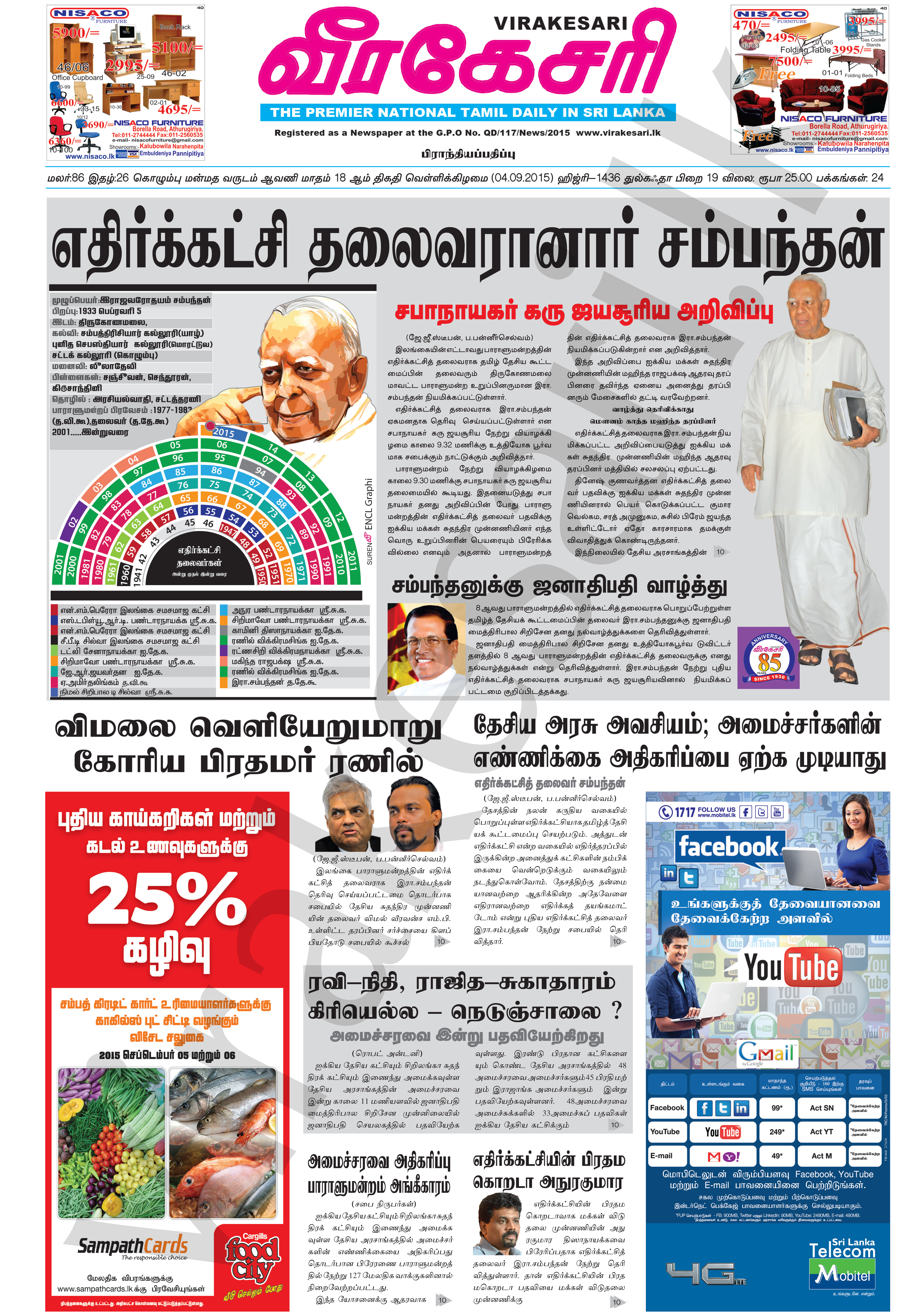 இலங்கை வரலாற்றில் இரண்டாவது தடவையாக தமிழர் ஒருவர் பாராளுமன்றத்தின் எதிர்கட்சித் தலைவராக தெரிவானார். இதற்கு முன்னர் 1977ஆம் ஆண்டு அப்பாப்பிள்ளை அமிர்தலிங்கம் பாராளுமன்றத்தின் எதிர்கட்சித் தலைவராக பதவி வகித்தார்.