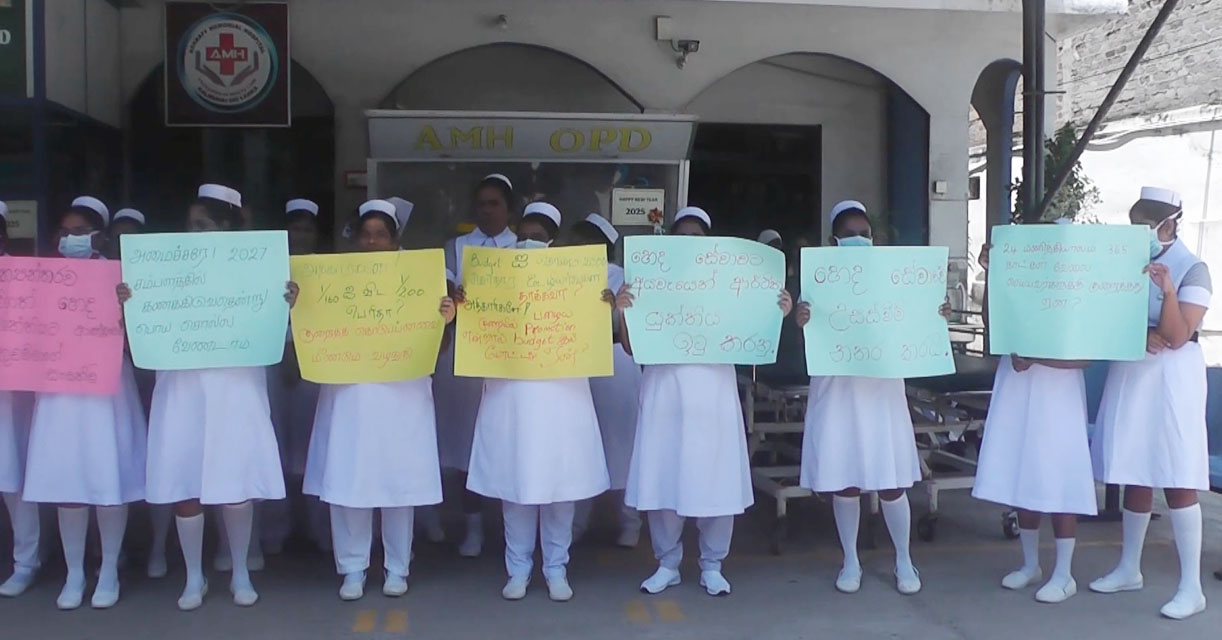 2025ஆம் ஆண்டுக்கான வரவு செலவுத் திட்டத்தில் வழங்கப்பட்ட மேலதிக நேரக் கொடுப்பனவுகளைக் குறைத்தமை, பதவி உயர்வு முறையில் மாற்றத்தை ஏற்படுத்தியுள்ளமை, போன்ற பல்வேறு கோரிக்கைகளை முன்வைத்து இன்று தாதியர்கள் பணிப்பகிஸ்கரிப்பில் ஈடுபட்டனர்.