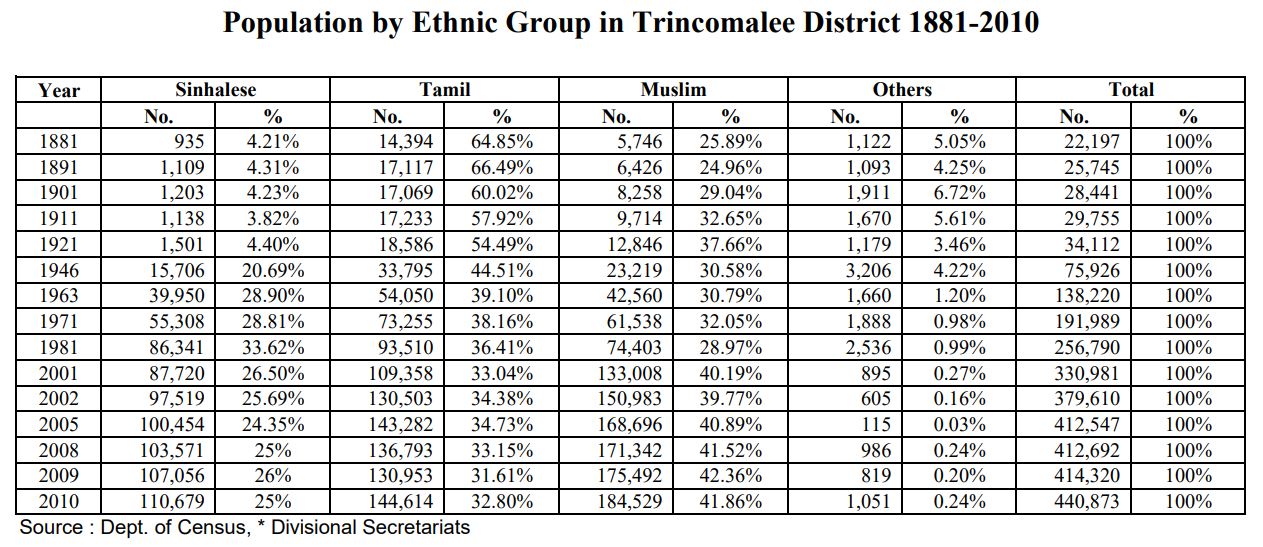 சிங்கள மக்கள் இல்லாத இடங்களில் பௌத்த விகாரைகளை அமைத்து, அவற்றுக்காக பெருமளவான நிலங்களை கையகப்படுத்தி சிங்கள மக்களை குடியேற்றி தமிழ் மக்களுடைய விகிதாசாரத்தை மாற்றி அமைப்பதற்கான நடவடிக்கையாக தமிழ் பேசும் மக்கள் இதனை பார்க்கின்றனர். குறிப்பாக “பூஜாபூமி” எனும் பெயரில் பௌத்த பிக்குகளால் 3820 ஏக்கருக்கு மேற்பட்ட காணிகள் ஆக்கிரமிக்கப்பட்டுள்ளன.