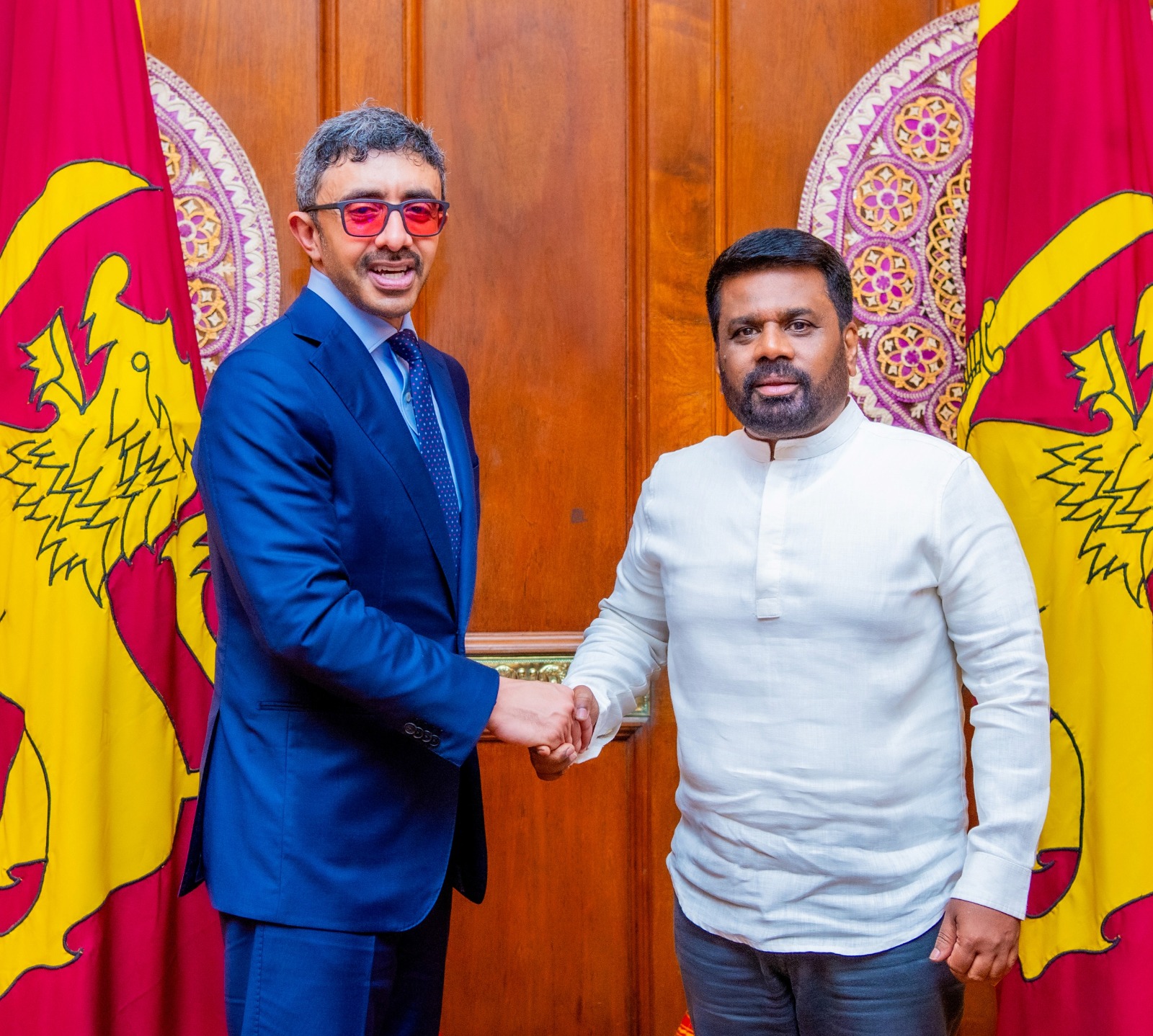 இலங்கைக்கு விஜயம் மேற்கொண்டிருக்கும் ஐக்கிய அரபு அமீரகத்தின் உப பிரதமரும் வெளியுறவு அமைச்சருமான ஷேக் அப்துல்லா பின் சயீட் அல் நஹியான் தலைமையிலான குழுவினர், 22ஆம் திகதி செவ்வாய்க்கிழமை ஜனாதிபதி செயலகத்தில் ஜனாதிபதி அநுர குமார திசாநாயக்கவை சந்தித்து கலந்துரையாடியபோது இதனைத் தெரிவித்தனர்.