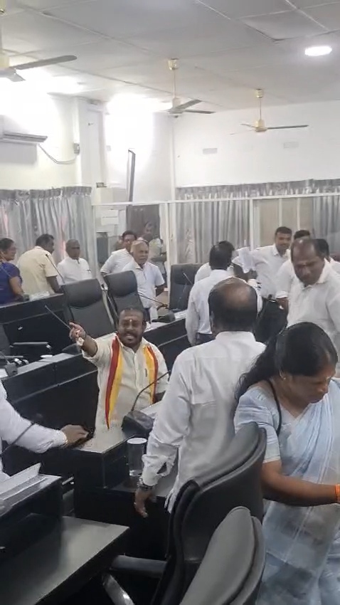 தமக்கு தமது கருத்துக்களை கூற சபையில் சந்தர்ப்பம் வழங்கப்பட வேண்டும். கூட்டத்தை முடிவுக்கு கொண்டுவர வேண்டாம் என கோரிக்கை விடுத்து சபையின் குறுக்கே சென்று முதல்வர் வெளியேறுவதை தடுத்ததால் குழப்பம் ஏற்பட்டது.