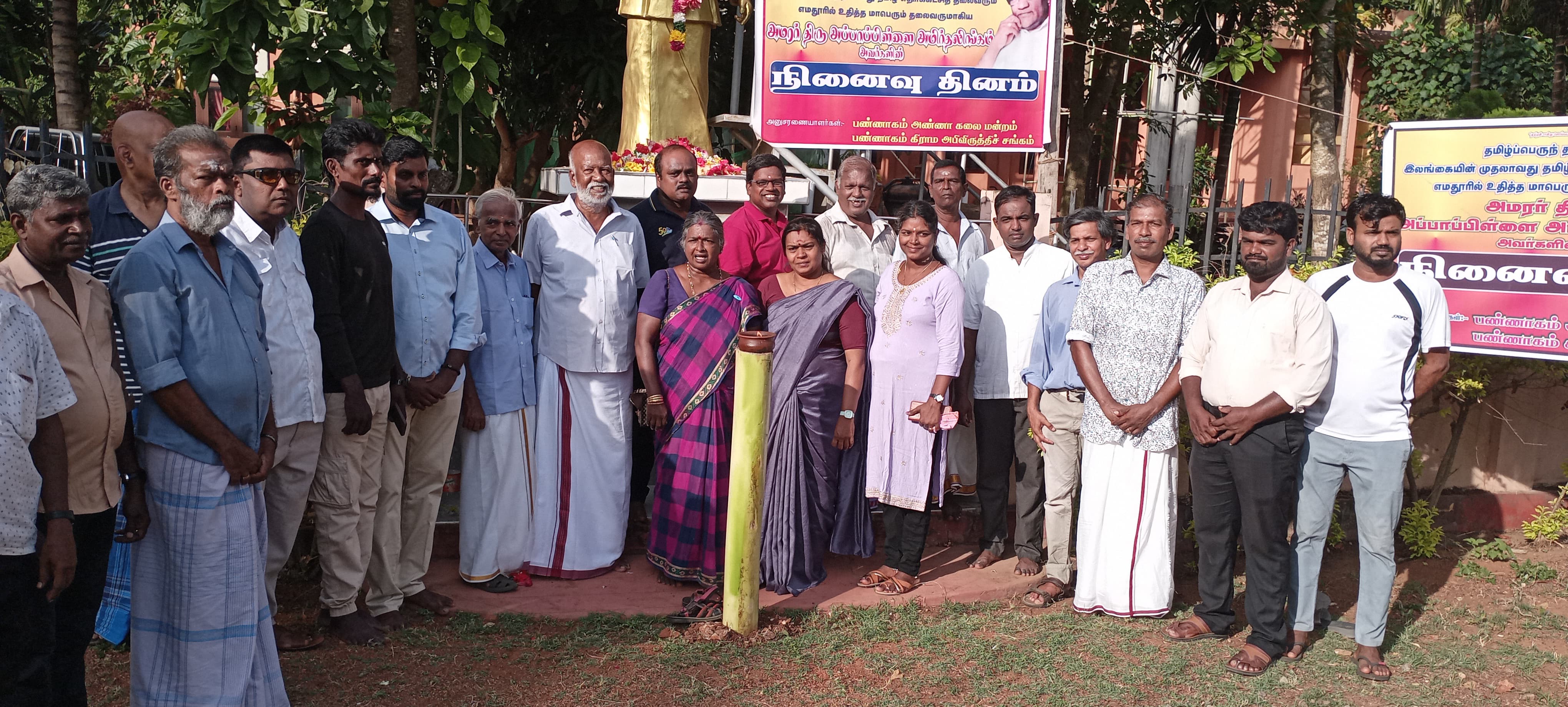 பண்ணாகம் கிராம அபிவிருத்தி சங்கத்தின் ஏற்பாட்டில் இடம்பெற்ற நிகழ்வின்போது அமரரது உருவச்சிலைக்கு மலர்மாலை அணிவிக்கப்பட்டு சுடரேற்றி மலர்தூவி அஞ்சலி செலுத்தப்பட்டது.