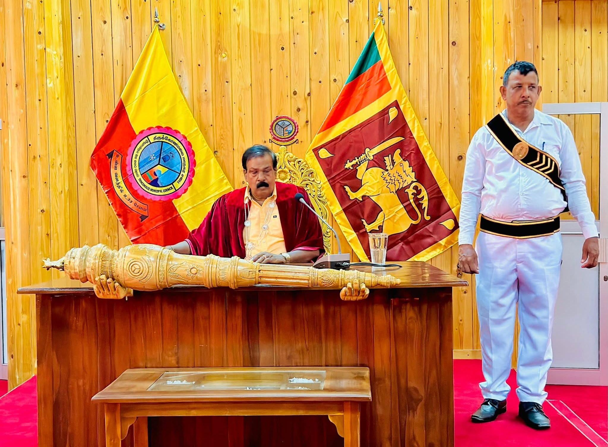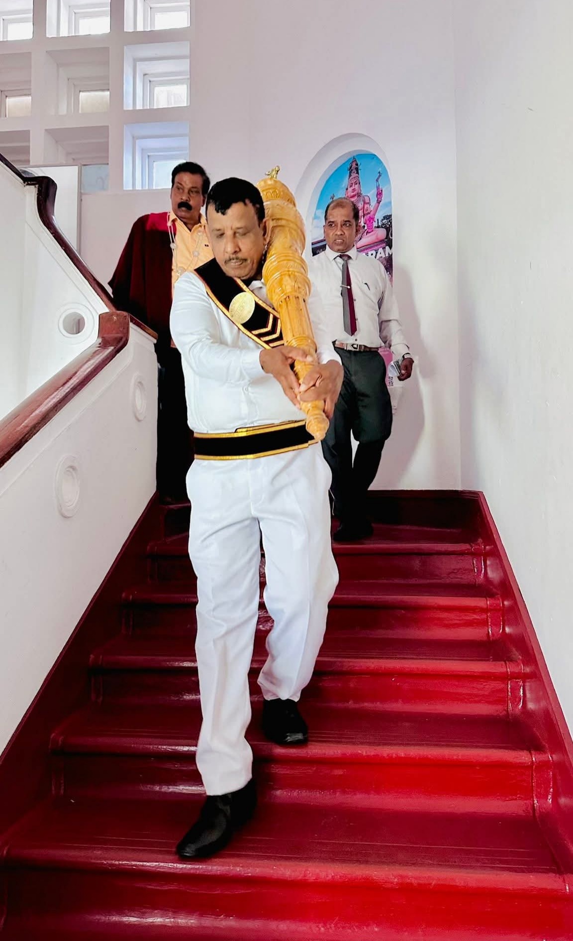 அமர்வின்போது சபைக்கு கொண்டுவரப்பட்ட செங்கோல் திருகோணமலையின் அடையாளமாக நந்தி உள்வாங்கப்பட்டு, அனைத்து மதங்களையும் பிரதிபலிக்கும் வகையில் நான்கு மத தலங்களும் உள்ளடக்கப்பட்டு திருக்குறளை முன்னிறுத்தி தமிழ் பாரம்பரிய கலை கலாச்சாரத்துடன் உருவாக்கப்பட்டு சபையில் முதல்வரால் சமர்ப்பிக்கப்பட்டது.