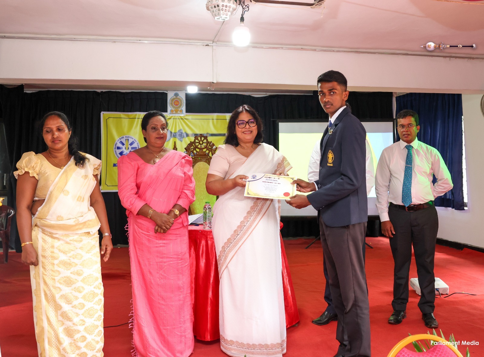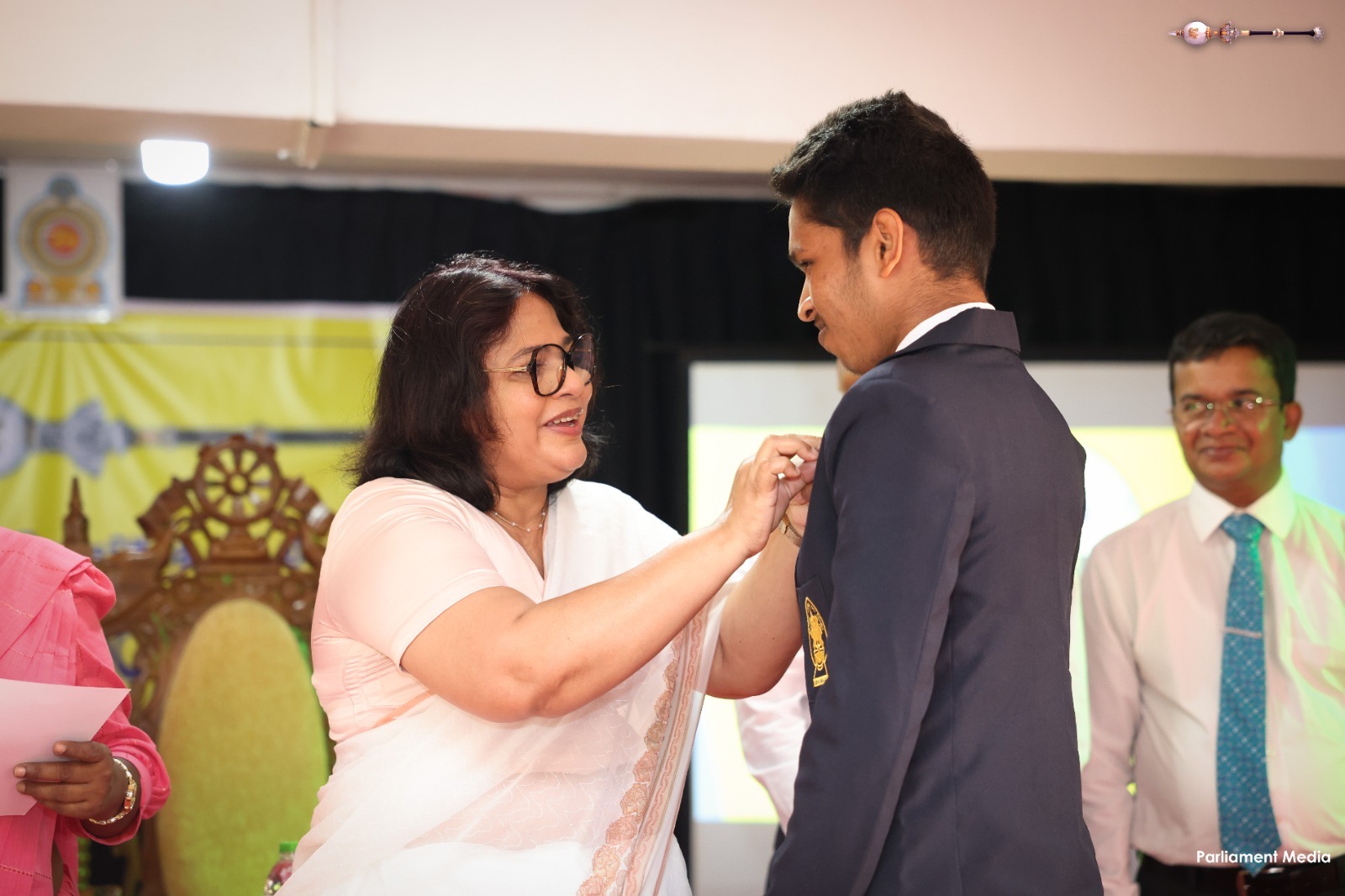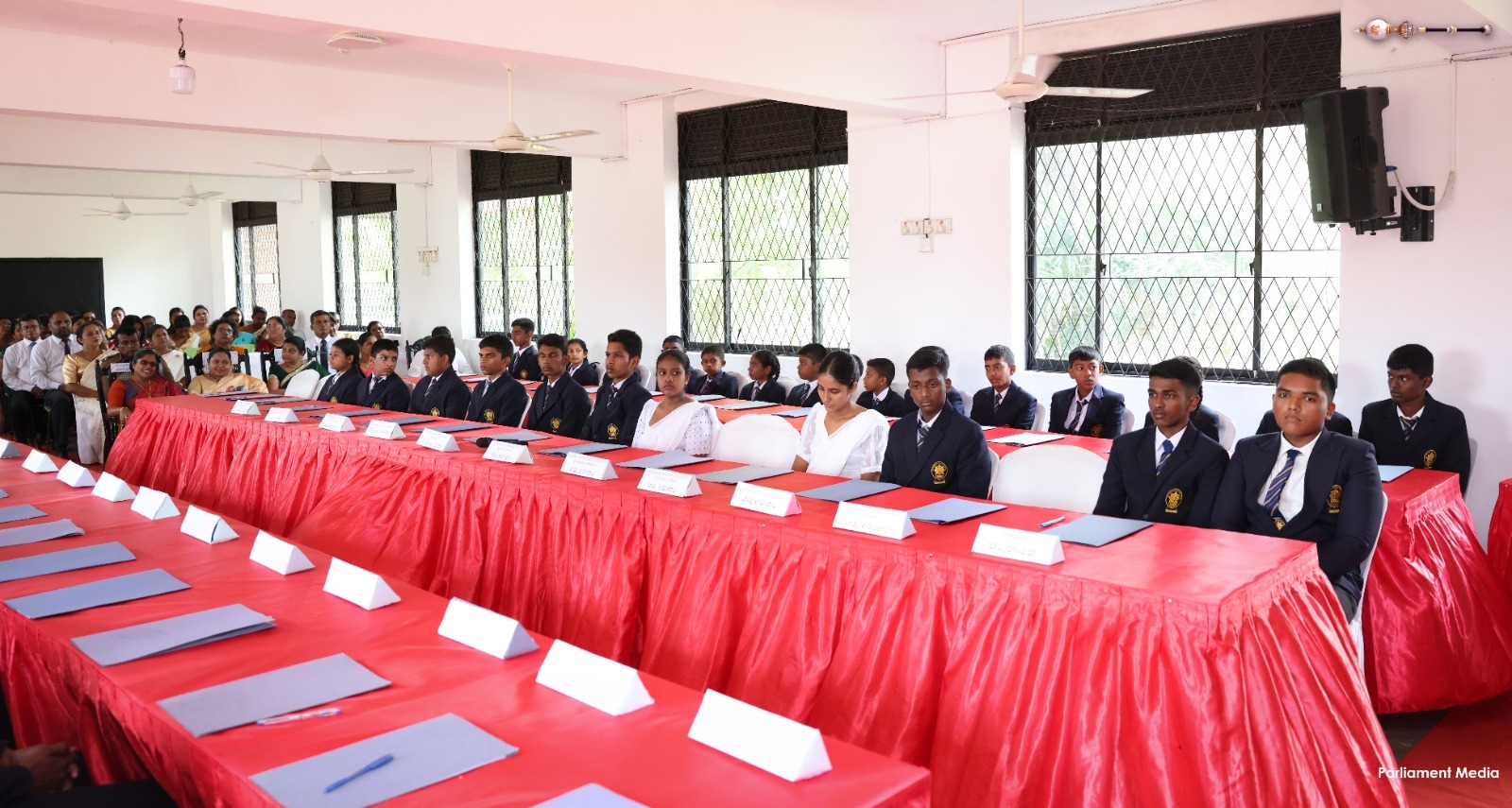இங்கு, மாணவர் பாராளுமன்றத்தைப் பிரதிநிதித்துவப்படுத்தும் மாணவர்களுக்கு உத்தியோகபூர்வ சின்னங்களை பாராளுமன்றத்தின் செயலாளர் நாயகம் குஷானி ரோஹணதீர அணிவித்தார்.