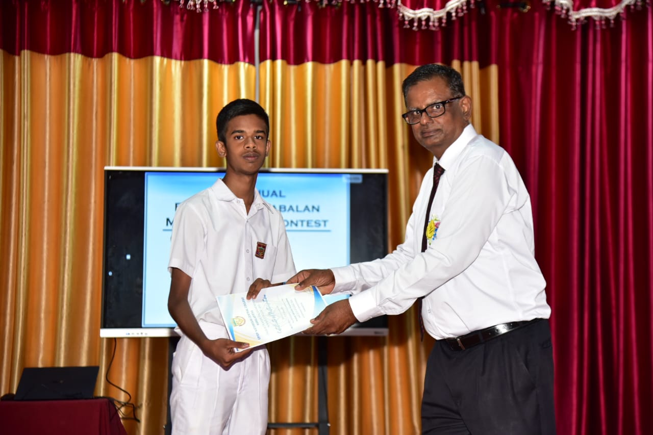 எழுத்துப் பரீட்சை, வினா- விடை போட்டி என்பவற்றின் இறுதியாக புனித. மரியாள் கல்லூரி, கதிரேசன் மத்திய கல்லூரி, கம்பளை இந்துக் கல்லூரி ஆகிய பாடசாலைகள் முதல் மூன்று இடங்களை பெற்றன.