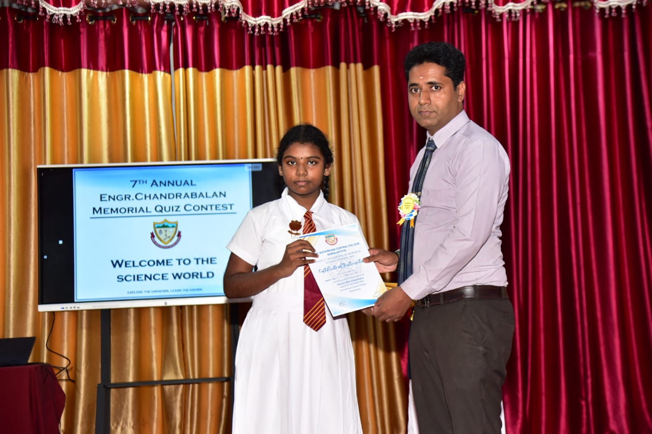 பாடசாலைகளுக்கு இடையிலான பொறியியலாளர் சந்திரபாலன் ஞாபகார்த்த விஞ்ஞான வினா விடை போட்டி 7 ஆவது முறையாக கதிரேசன் மத்திய கல்லூரியில் திங்கட்கிழமை (06) கல்லூரி அதிபர் எஸ். ரகுவின் தலைமையில் நடைபெற்றது.
