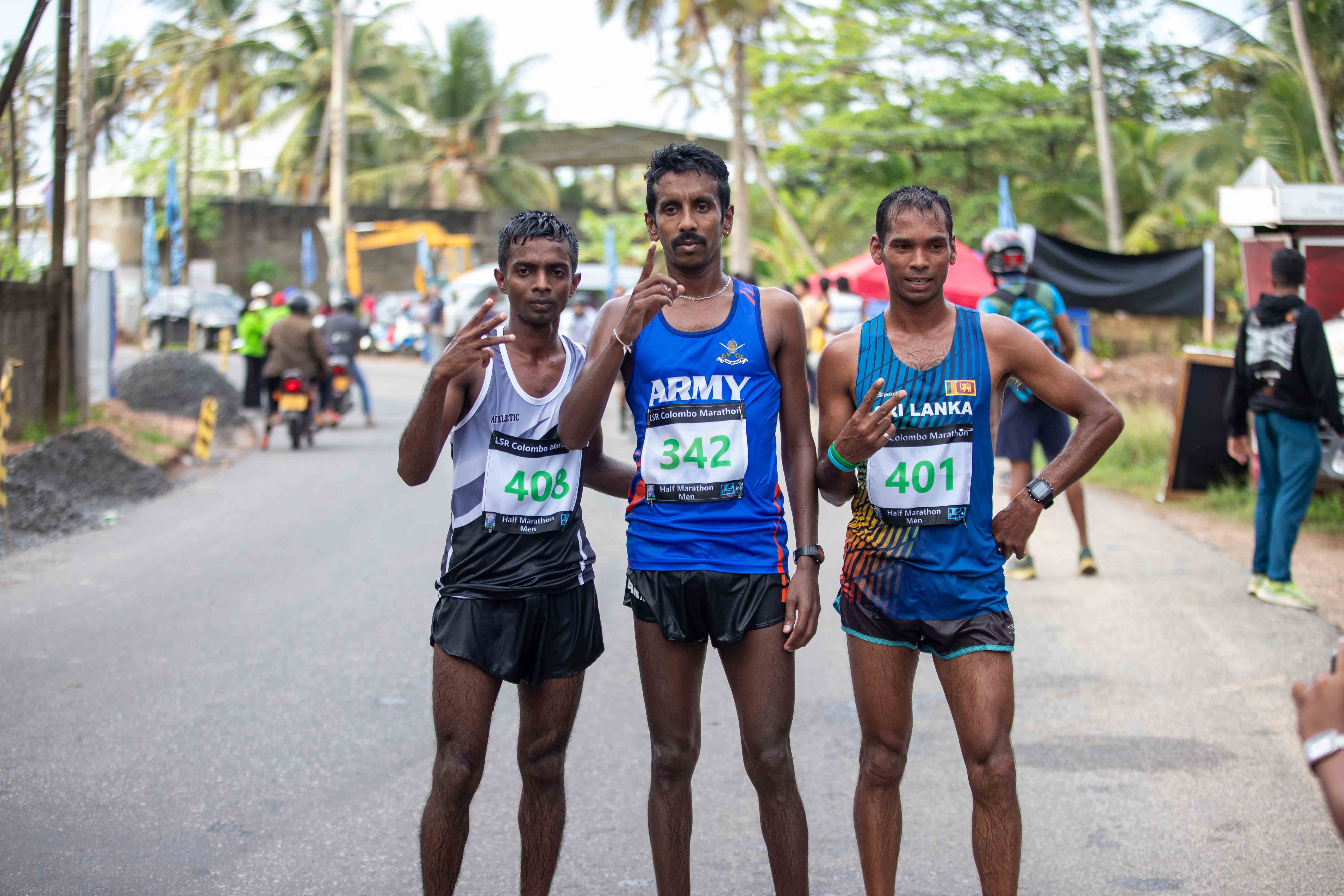 ஆண்களுக்கான அரை மரதன் ஓட்டப் போட்டியில் முதல் பத்து இடங்களையும் இலங்கையர்கள் பெற்று அசத்தினர்.