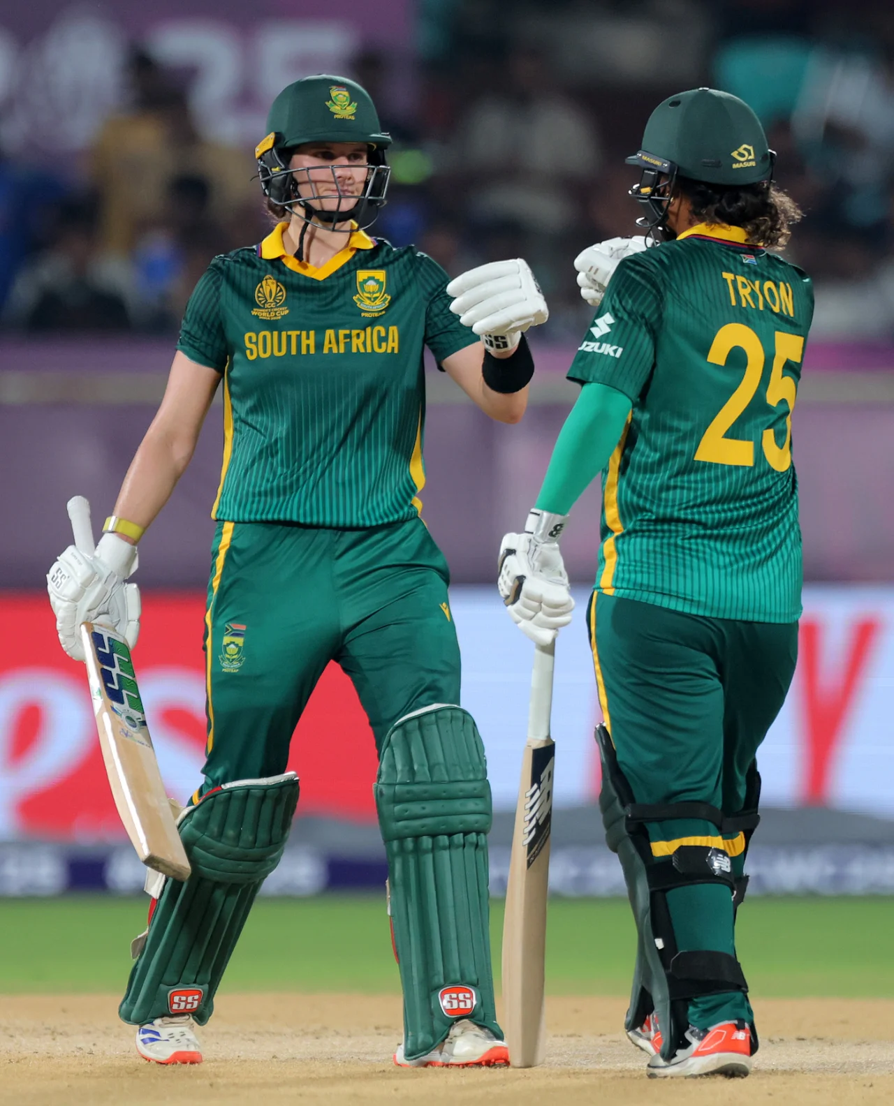 தஸ்மின் ப்றிட்ஸ் (0), சுனே லுஸ் (5) ஆகிய இருவரும் முதல் 6 ஓவர்களுக்குள் ஆட்டம் இழந்தனர். (18 - 2 விக்.)