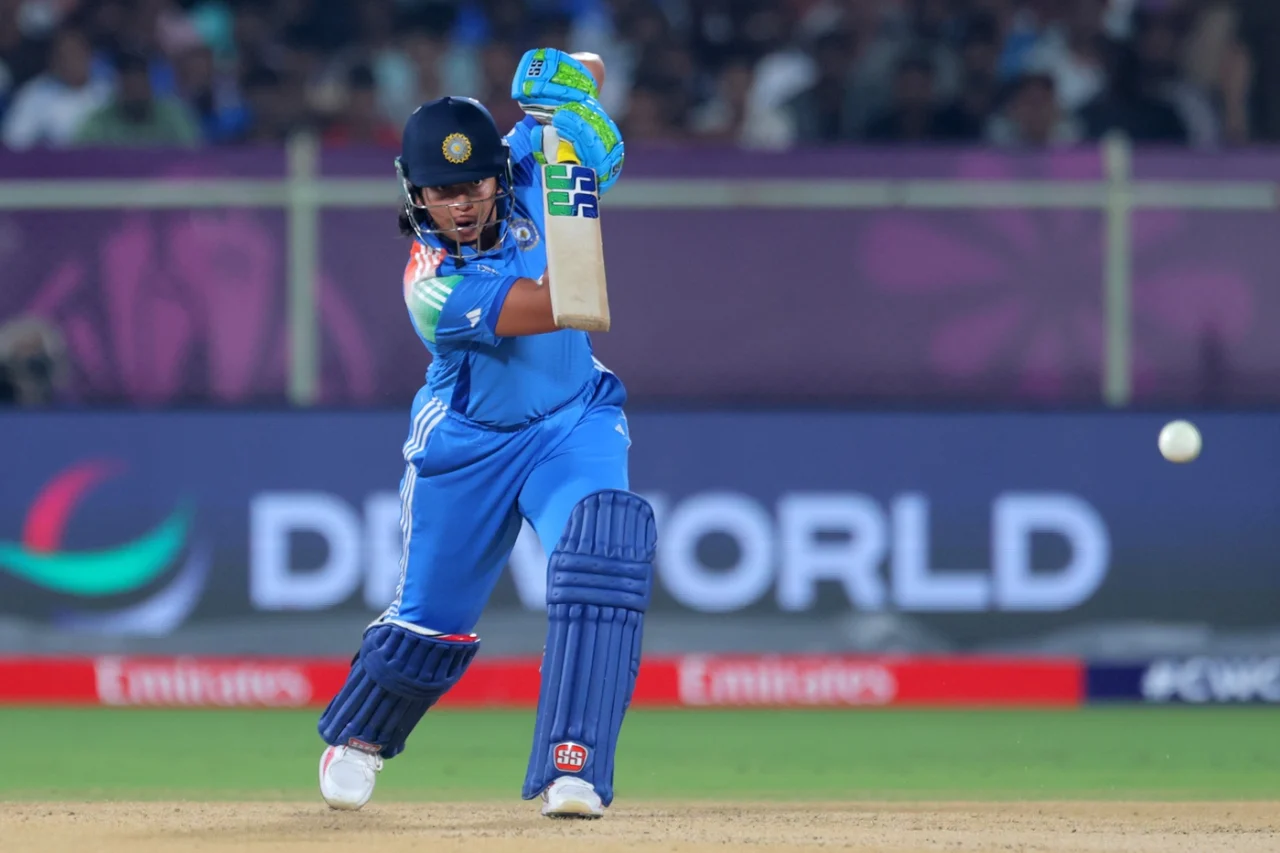 ஸ்ம்ரித்தி மந்தனா 23 ஓட்டங்களையும் ஹார்லீன் டியோல் 13 ஓட்டங்டங்களையும் பெற்றனர். மறுபக்கத்தில் திறமையாகத் துடுப்பெடுத்தாடிய ப்ராத்திகா ராவல் 37 ஓட்டங்கள் பெற்ற நிலையில் 3ஆவதாக ஆட்டம் இழந்தார்.