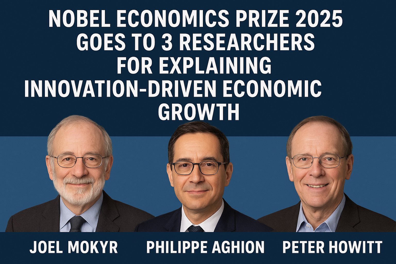 2025 ஆம் ஆண்டுக்கான பொருளாதாரத்திற்கான நோபல் பரிசு இன்று திங்கட்கிழமை அறிவிக்கப்பட்டுள்ளது. அதன்படி புதுமை சார்ந்த பொருளாதார வளர்ச்சியை விளக்கியதற்காக பொருளாதாரத்திற்கான நோபல் பரிசு ஜோயல் மோகிர், பிலிப் அகியோன் மற்றும் பீட்டர் ஹோவிட் ஆகியோருக்கு கூட்டாக அறிவிக்கப்பட்டுள்ளது.