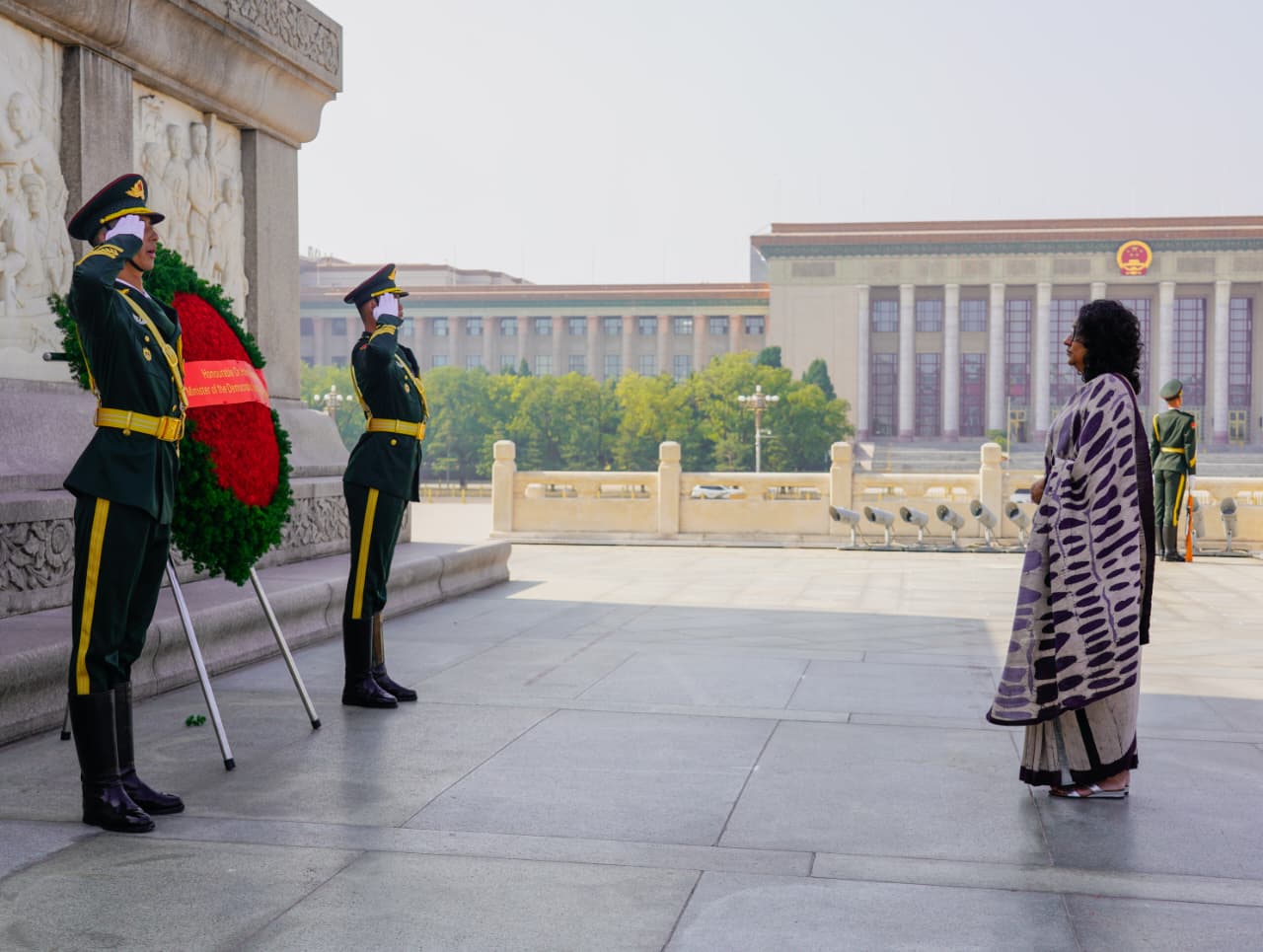 இதன்போது, மக்கள் சீனக் குடியரசின் சிரேஷ்ட தலைவர்களால் பிரதமர் அன்புடன் வரவேற்கப்பட்டார். அதையடுத்து, மக்கள் தலைவர்களுக்கு அஞ்சலி செலுத்தும் வகையில் நடைபெற்ற மலர் வளையம் வைத்து கௌரவிக்கும் நிகழ்விலும் பங்கேற்றார்.