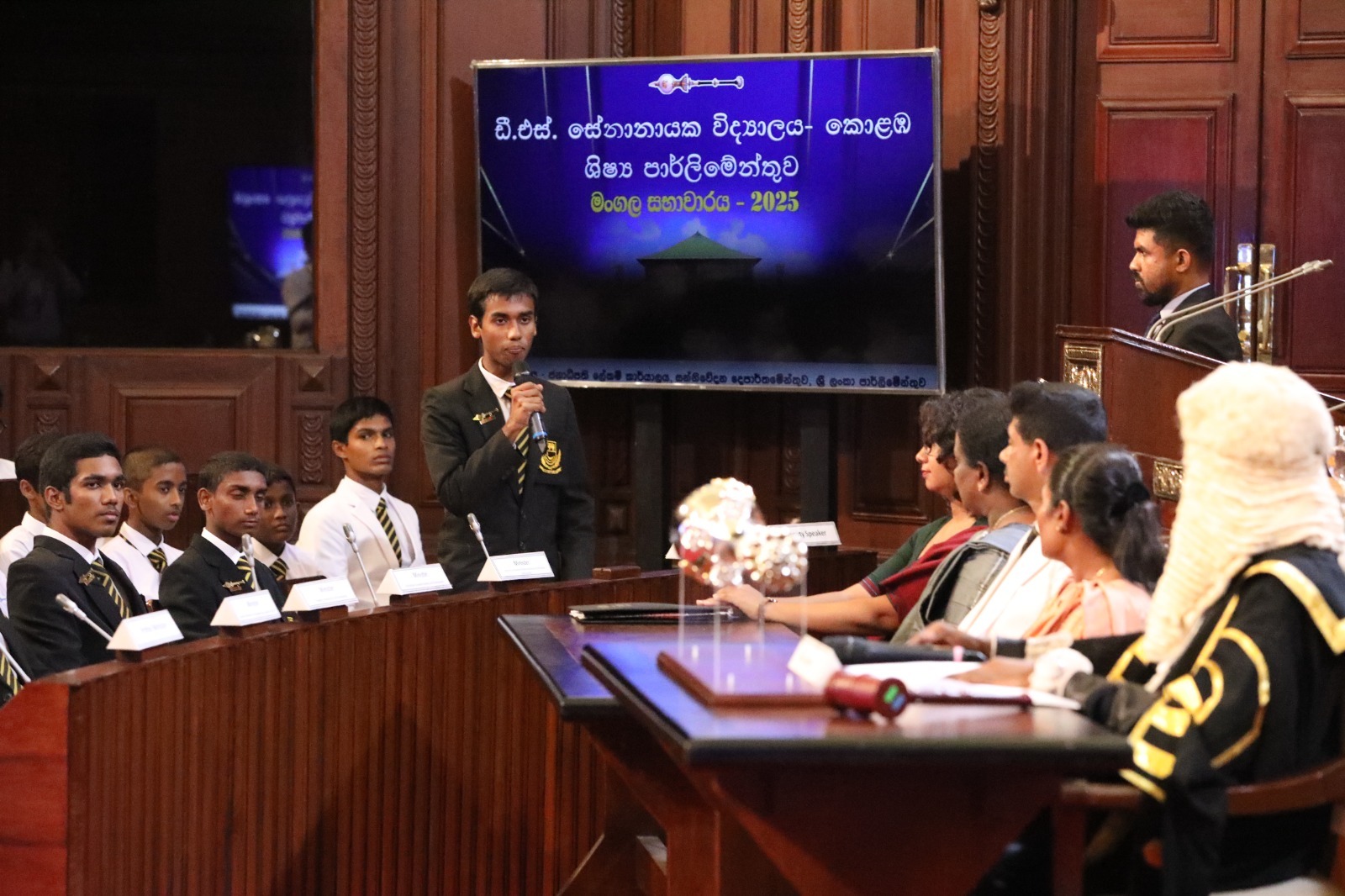 இலங்கை பாராளுமன்றத்தின் தொடர்பாடல் திணைக்களமும் ஜனாதிபதி செயலகமும் இணைந்து செயற்படுத்தும் மாணவர் பாராளுமன்ற நிகழ்ச்சித்திட்டத் தொடருக்கு இணையாக கொழும்பு டி.எஸ். சேனாநாயக்க கல்லூரிக்கு இந்த வாய்ப்பு கிடைத்தது.