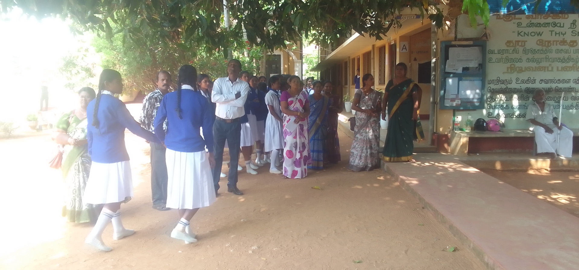 காலை 9:15 மணியளவில் சுனமி எச்சரிக்கை ஒலி ஒலிக்கப்பட்டதை தொடர்ந்து மாணவிகள் வகுப்பு வகுப்பாக அணிவகுக்கப்பட்ட அங்கு உரியவர்கள் அறுவுறுத்தப்பட்டனர்.