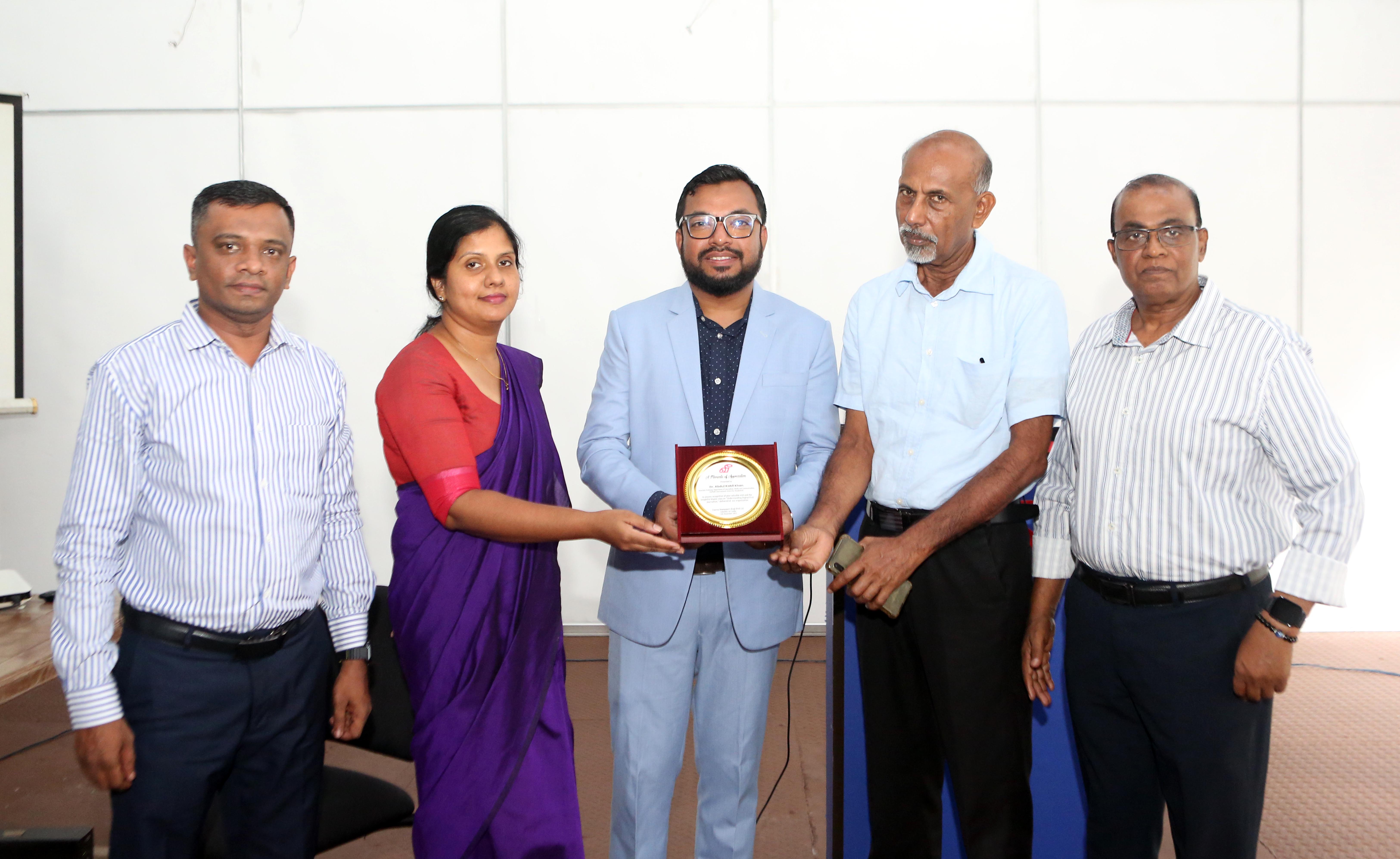 அதனையடுத்து, நிறுவனத்தின் பிரதம நிறைவேற்று அதிகாரி எம்.செந்தில்நாதனுக்கு பேராசிரியர் கபில்கான் நினைவுப் பரிசு வழங்கினார்.