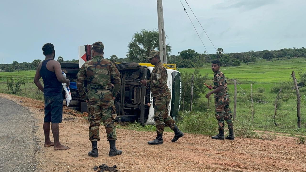 வற்றாப்பளை பகுதியில் இருந்து புதுக்குடியிருப்பு நோக்கி அரிசி ஏற்றி பயணித்துக் கொண்டிருந்த லொறி வாகனம், ஜங்கன்குளம் பகுதியில் உள்ள வளைவில் திரும்ப முற்பட்டபோது கட்டுப்பாட்டை இழந்து வீதியை விட்டு விலகி தடம்புரண்டுள்ளது.