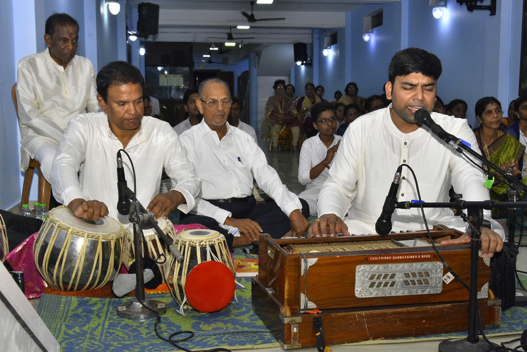 இதன்போது, சத்ய சாயி பாபா அறக்கட்டளையகத்தின் சார்பில் பிரதம அறங்காவலர் எஸ்.என்.உதயநாயகன், பஜன் பாடகரை பாராட்டி கெளரவித்தார்.