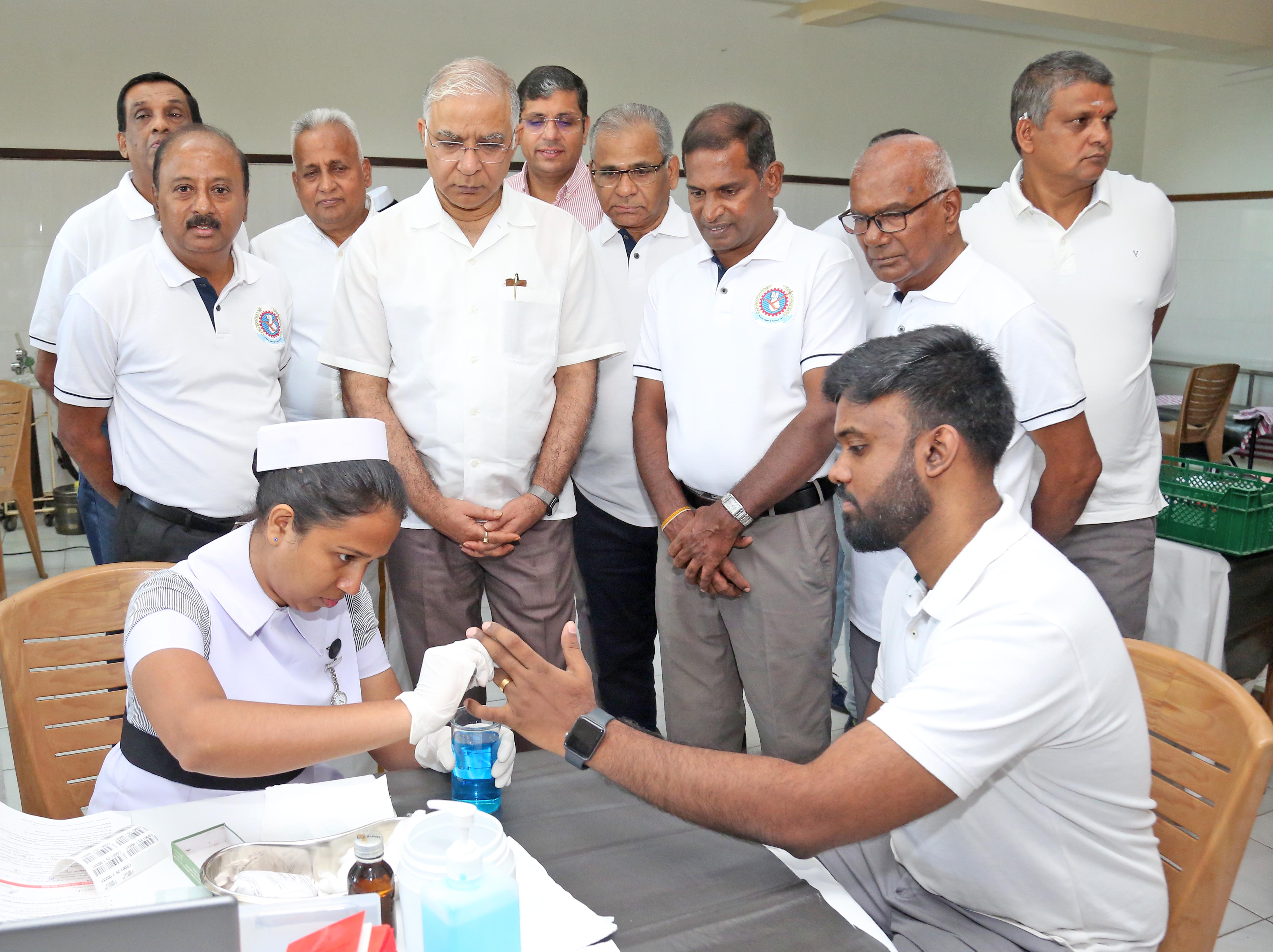 இலங்கை ஆறுநாட்டு வேளாலர் சபை, இந்திய உயர்ஸ்தானிகராலயம் இணைந்து நடத்திய இரத்ததான முகாம், பம்பலப்பிட்டி ஆறுநாட்டு வேளாளர் சபை மண்டபத்தில் இன்று ஞாயிற்றுக்கிழமை (23) நடைபெற்றது. இதன்போது இலங்கைக்கான இந்திய உயர்ஸ்தானிகர் சந்தோஷ் ஜா கலந்து கொண்டதுடன், அவரை இலங்கை ஆறுநாட்டு வேளாலர் சபை தலைவர் ஜெயகருணாகரன் கௌரவிப்பதையும் அருகில் பொது செயலாளர் நடராஜன், பொருளாளர் கணேசன் ஆகியோர் அருகில் நிற்பதையும் படங்களில் காணலாம்.