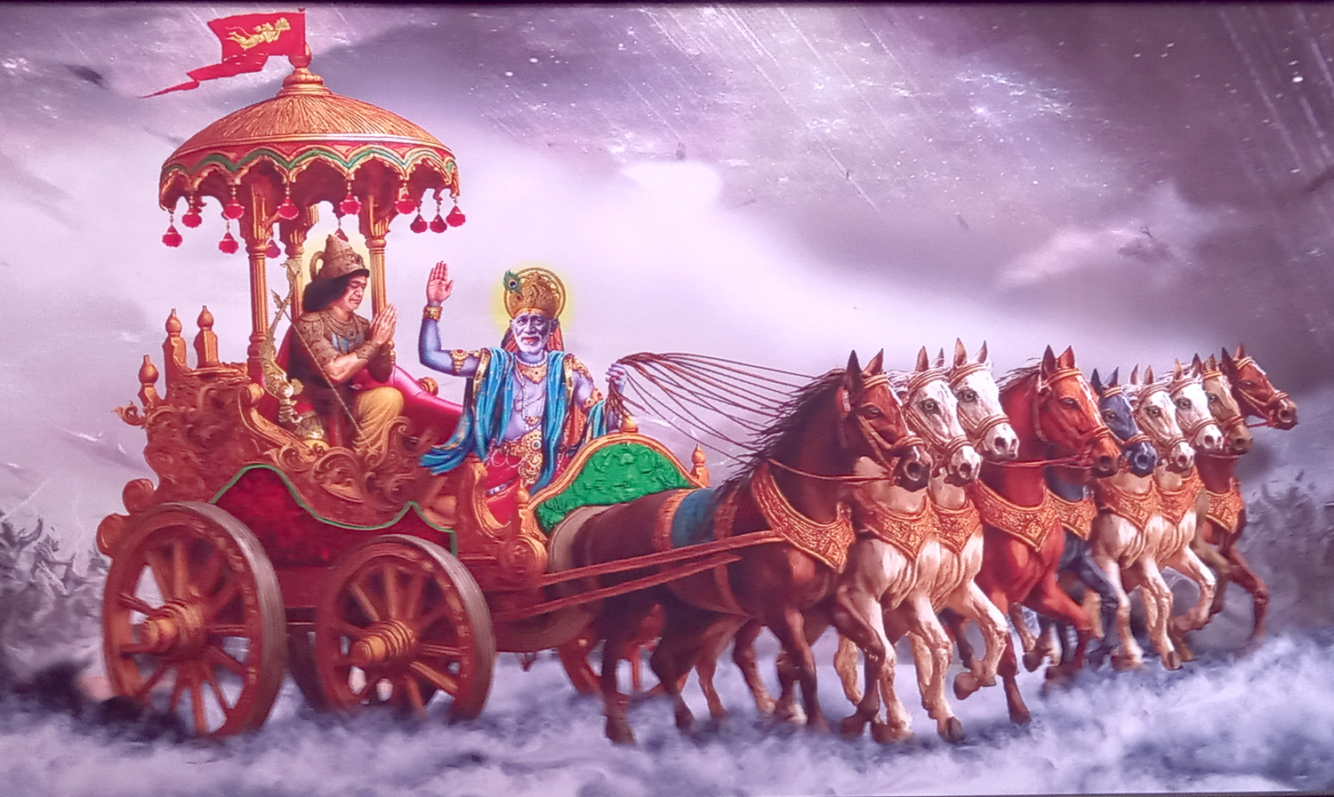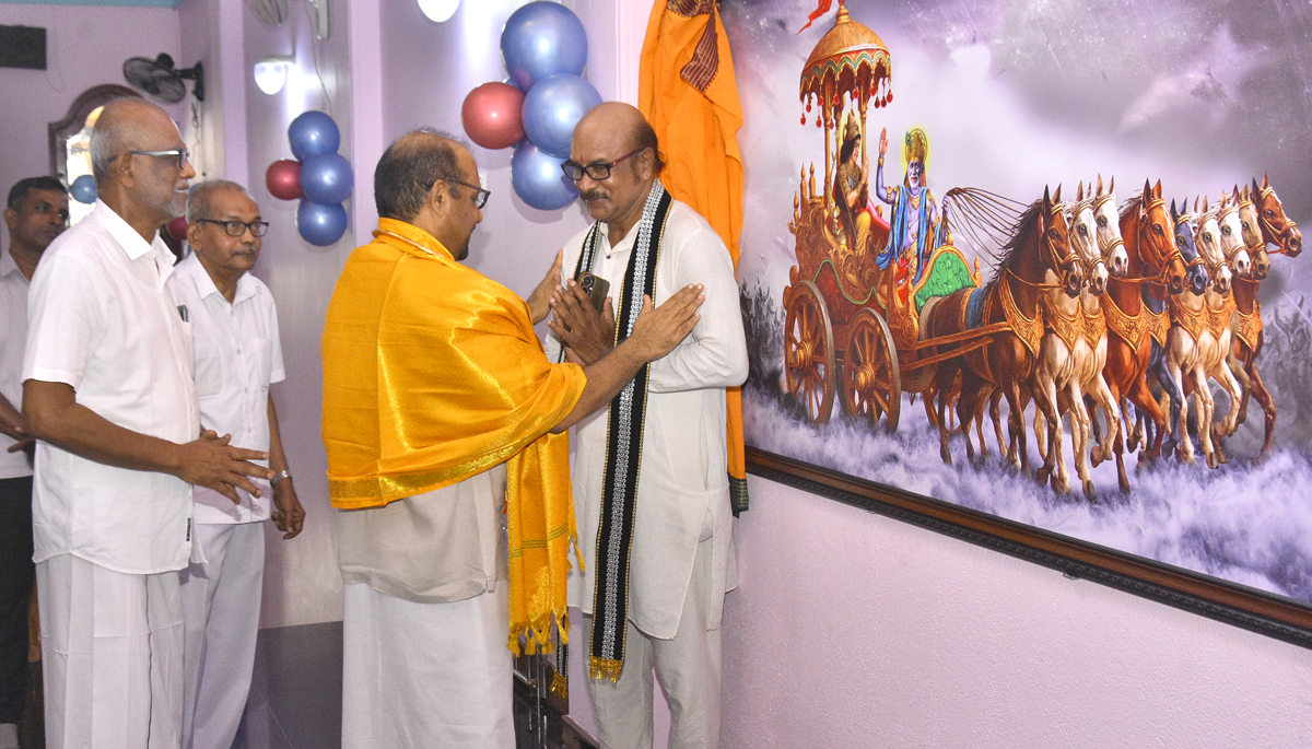 பிரபல ஓவியரும் சாயி பக்தருமான கௌசிகன் மகாபாரதத்தை மனதில் முன்நிறுத்தி சீரடி சாய் பாபா ஒன்பது குதிரைகள் கொண்ட தேர் சாதியாக - சத்ய சாய் பாபாவை அழைத்துச்செல்லும் ஓவியம் திரைநீக்கம் செய்து வைக்கப்பட்டது.