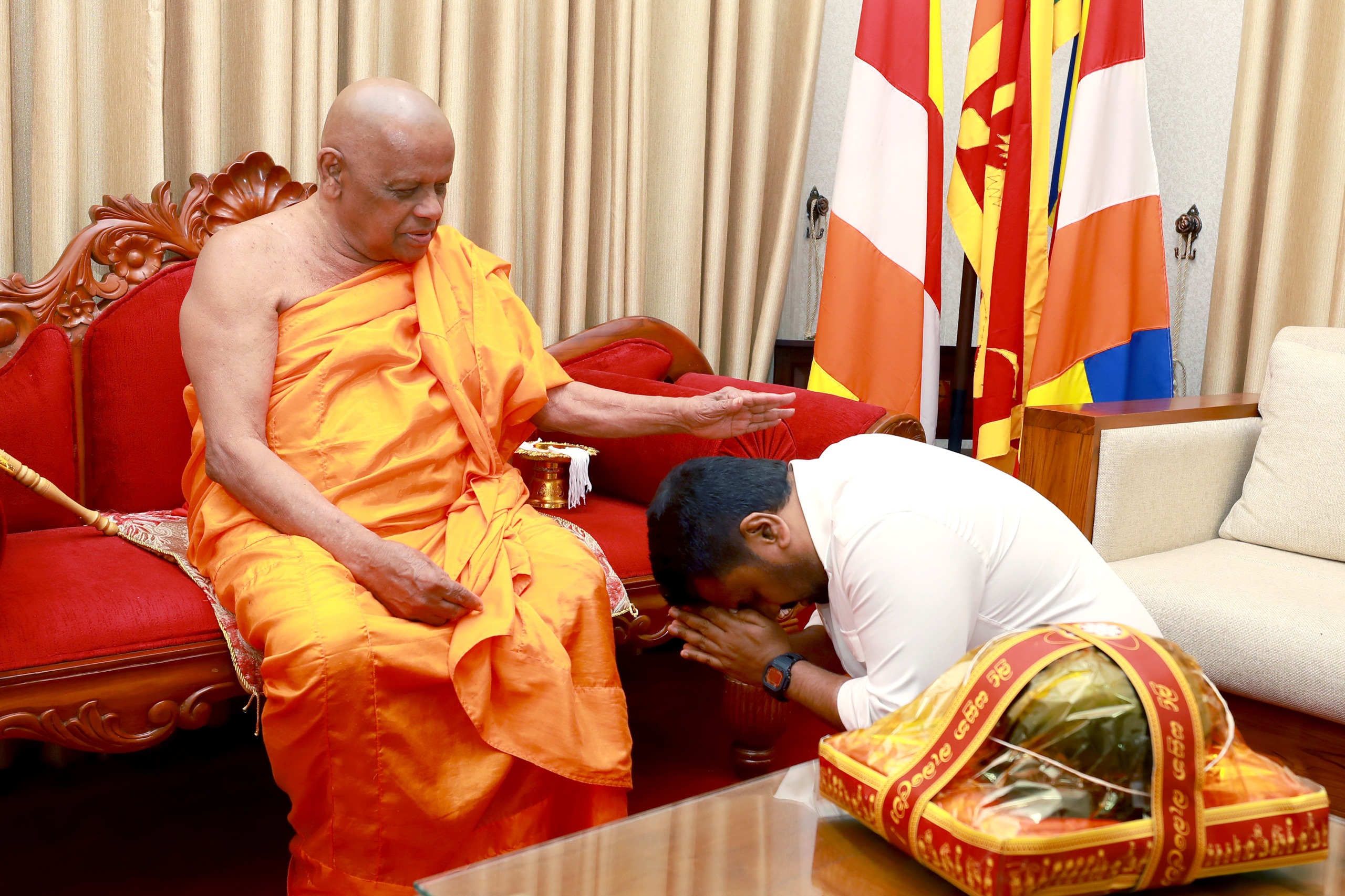 ஜனாதிபதி அநுரகுமார திசாநாயக்க இன்று சனிக்கிழமை (06) முற்பகல் அஸ்கிரிய மகா விகாரைக்குச் சென்று, அஸ்கிரிய தரப்பின் மகாநாயக்க அதி வணக்கத்திற்குரிய வரகாகொட ஸ்ரீ ஞானரதன தேரரைச் சந்தித்து ஆசி பெற்றார்.