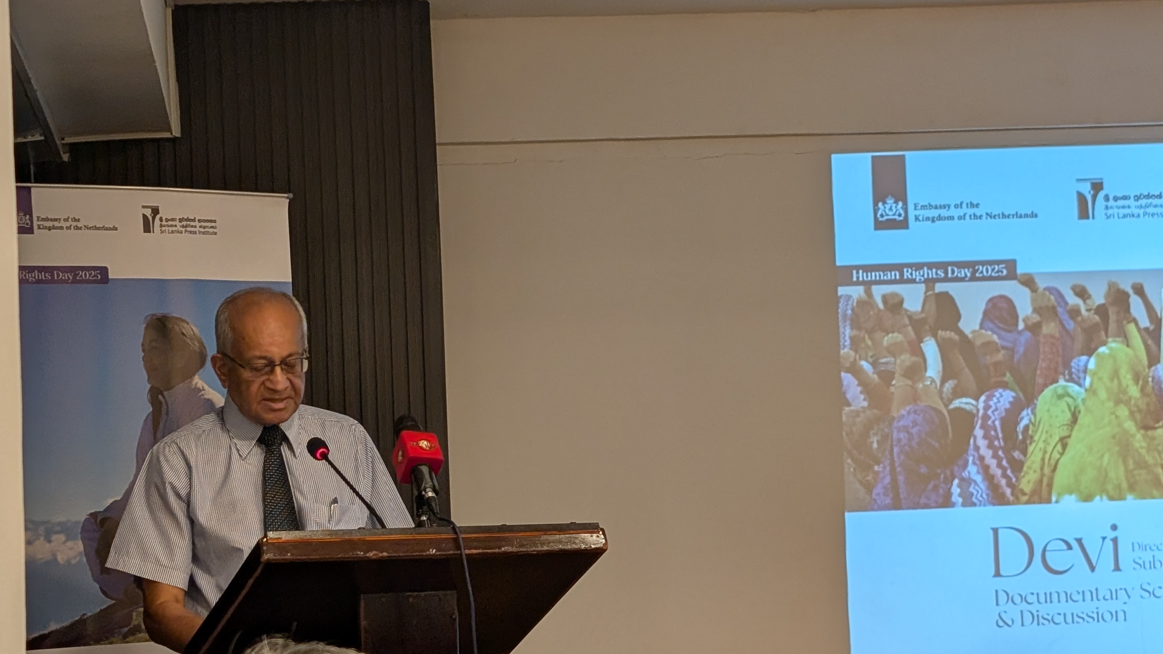 “தேவி” ஆவணப்படம் பாலியல் வன்முறையிலிருந்து உயிர் பிழைத்த ஒரு பெண் முனைப்புடன் நீதி தேடுவதை எடுத்துக்காட்டுகிறது. ஊடகத்துறை மனித உரிமைகளை பாதுகாத்து நிற்கும் ஒரு முக்கிய தூணாக உள்ளது, உண்மைகளை உலகிற்கு கொண்டு சேர்ப்பது ஊடகவியலாளர்களின் பொறுப்பு, ஊடகம் சுதந்திரமாக இருந்தால் மட்டுமே மனித உரிமைகள் பாதுகாக்கப்படும் எனத் தெரிவித்ததுடன் நிகழ்வுக்கு ஆதரவு வழங்கிய நெதர்லாந்து தூதரகத்திற்கும் நன்றியைத் தெரிவித்தார்.
