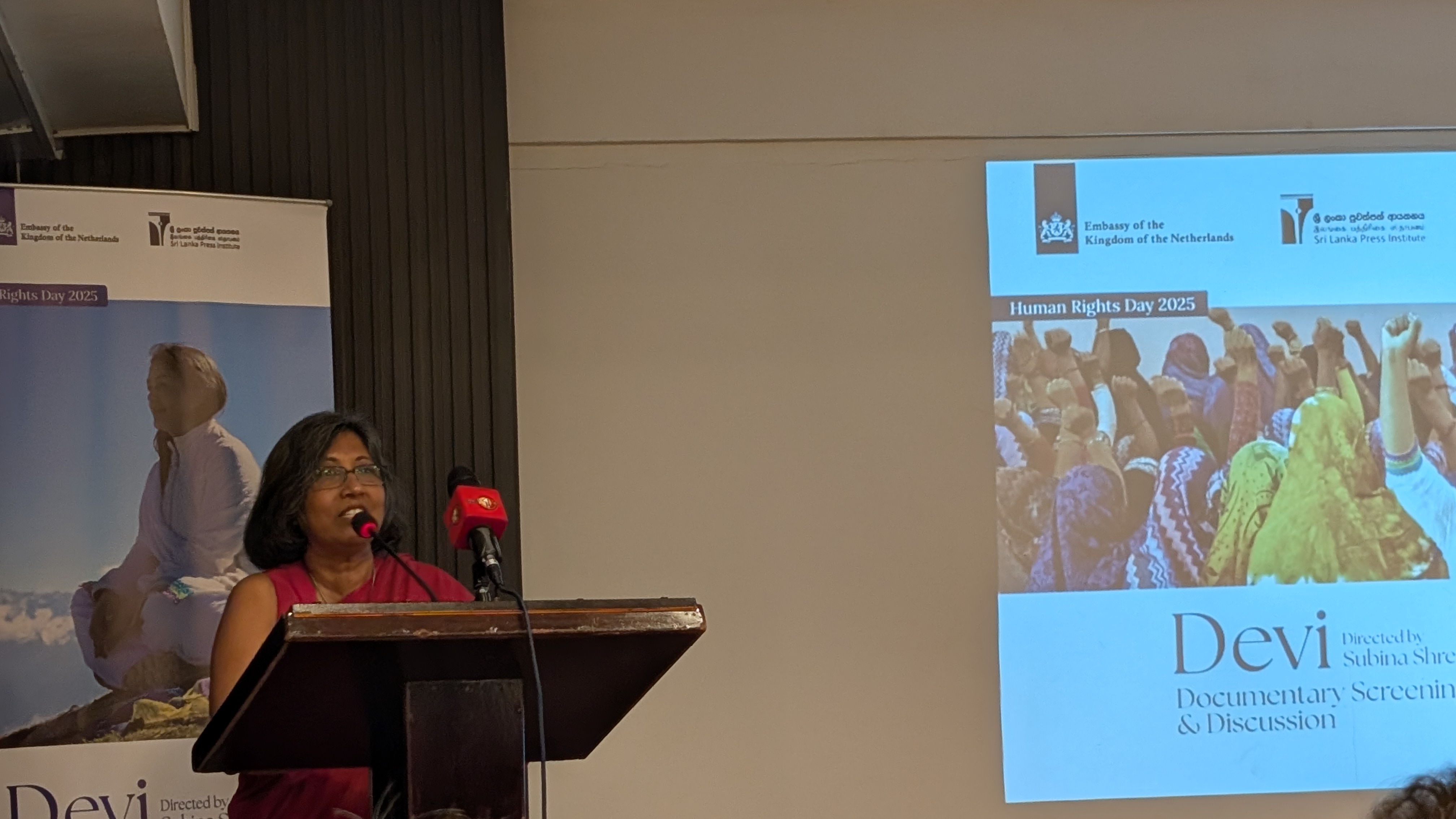 சர்வதேச மனித உரிமைகள் தினத்தை முன்னிட்டு, நேபாள ஆவணப்படமான “தேவி” 11 ஆம் திகதி (வியாழக்கிழமை) இலங்கை பத்திரிகை ஸ்தாபனத்தில் திரையிடப்பட்டது. இந்த திரையிடல், இலங்கை பத்திரிகை ஸ்தாபனம் மற்றும் நெதர்லாந்து தூதரகத்தால் இணைந்து ஏற்பாடு செய்யப்பட்டது. இந்த ஆவணப்படத்தை இயக்குனர் சுபினா ஸ்ரேஸ்தா இயக்கியுள்ளார். இந்த திரைப்படம் போர்க் காலத்தில் பாலியல் வன்முறைக்குள்ளான பெண் ஒருவர் நீதிக்காக நடத்திய உண்மையான போராட்டத்தை வெளிப்படுத்துகிறது.