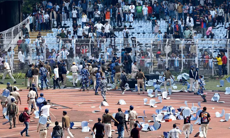 உலகின் தலைசிறந்த கால்பந்தாட்ட வீரர்களில் ஒருவரும் ஆர்ஜன்டீனாவை FIFA 2022 கால்பந்தாட்ட உலக சம்பியனாக்கிய அணித் தலைவருமான லியோனல் மெஸ்ஸியை அருகில் பார்க்க முடியாததால் ஆத்திரம் அடைந்த இந்திய ரசிகர்கள் ரகளையில் ஈடுபட்டனர்.