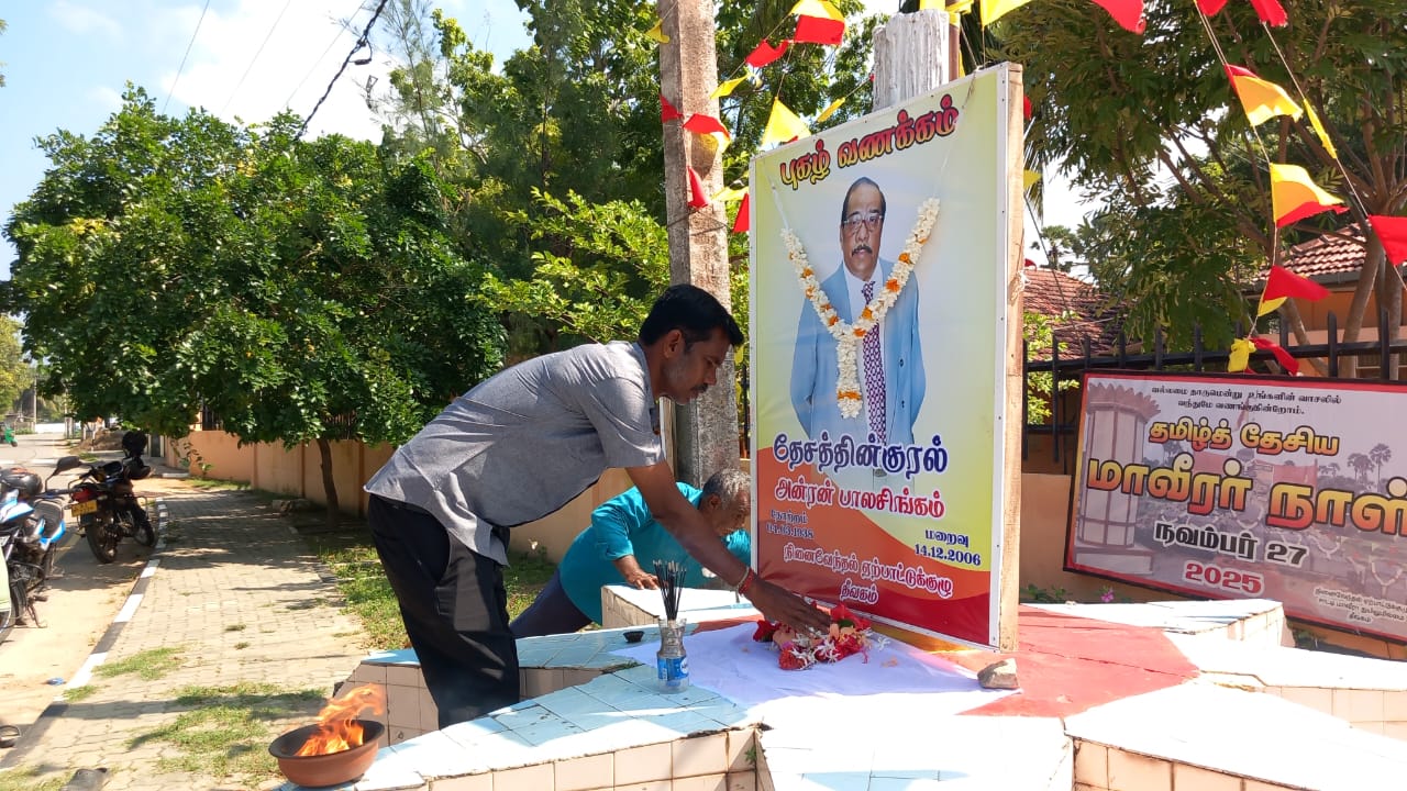 அதன் போது, தேசத்தின் குரலின் திருவுருவப் படத்துக்கு மலர் மாலை அணிவித்து ஈகச் சுடரேற்றி, மலர் தூவி அஞ்சலிக்கப்பட்டது.