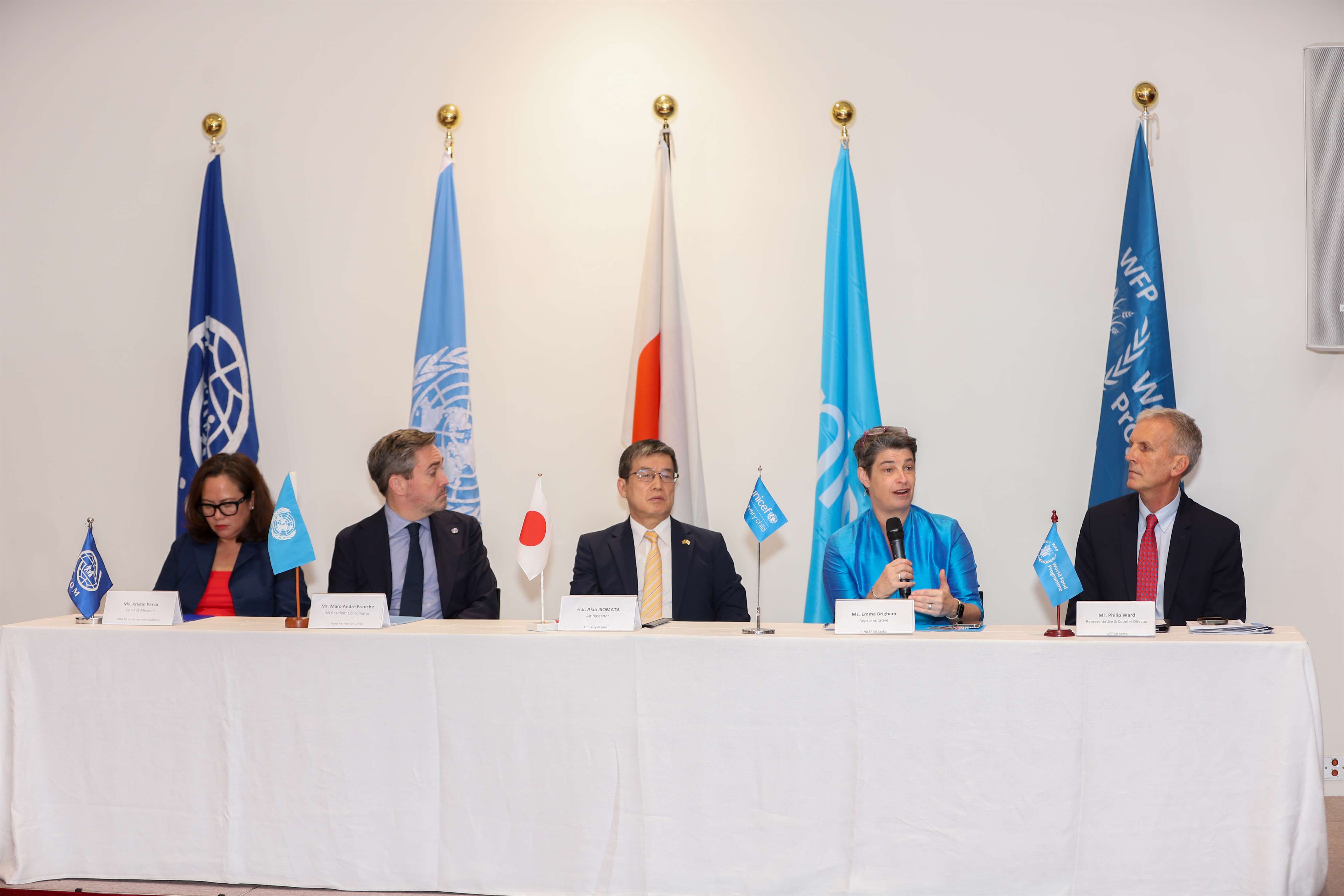 அமைச்சர் ஹெரத்துடனான சந்திப்பைத் தொடர்ந்து, தூதுவர் இசொமதா, ஐக்கிய நாடுகள் சபையின் வதிவிட ஒருங்கிணைப்பாளர் திரு. மார்க்-ஆண்ட்ரே ஃபிரான்ச், IOM இன் தலைமைத் தூதுவர் திருமதி கிறிஸ்டின் பார்கோ, UNICEF இன் பிரதிநிதி திருமதி எம்மா பிரிகம் மற்றும் WFP இன் பிரதிநிதி திரு. பிலிப் வார்ட் ஆகியோருடன் ஒரு ஊடக சந்திப்பை நடத்தினார். இந்த விளக்க அமர்வு, தேவைப்படும் இலங்கை மக்களுக்கு ஆதரவளிப்பதில் ஜப்பானின் விரிவான உதவி மற்றும் ஐக்கிய நாடுகள் அமைப்புடன் அதன் நெருங்கிய ஒத்துழைப்பை எடுத்துக்காட்டியது..