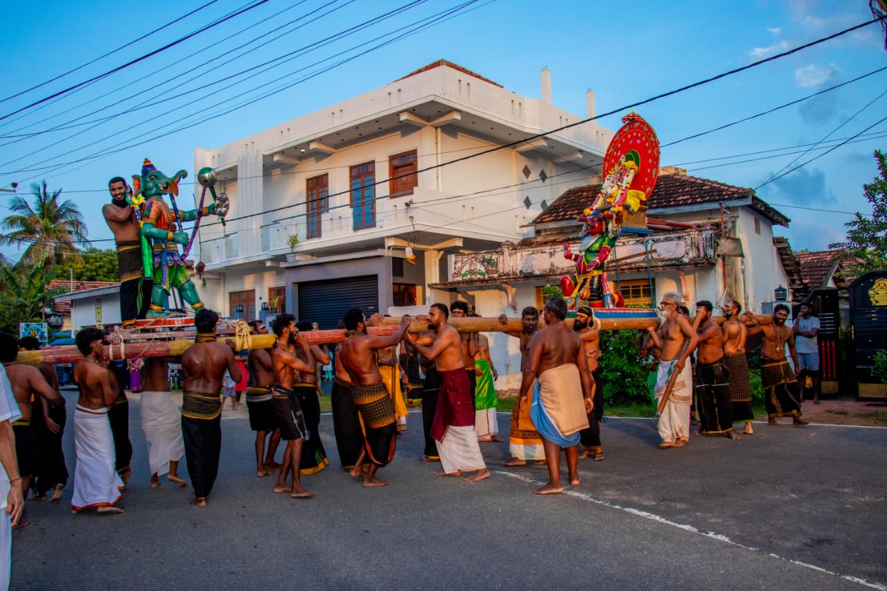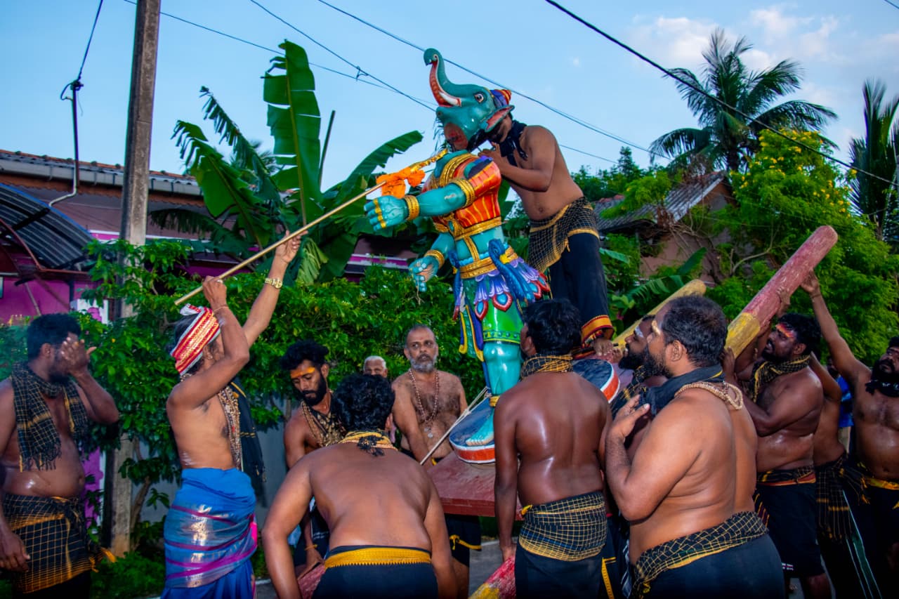 அதனைத் தொடர்ந்து விநாயகப் பெருமான் இடும்பன் வாகனத்தில் எழுந்தருளி பக்த அடியார்கள் புடைசூழ வெளிவீதி உலா வந்து, கஜமுகாசூரனை வதம் செய்த காட்சி நிகழ்வை பக்தர்கள் கண்டுகளித்தனர்.