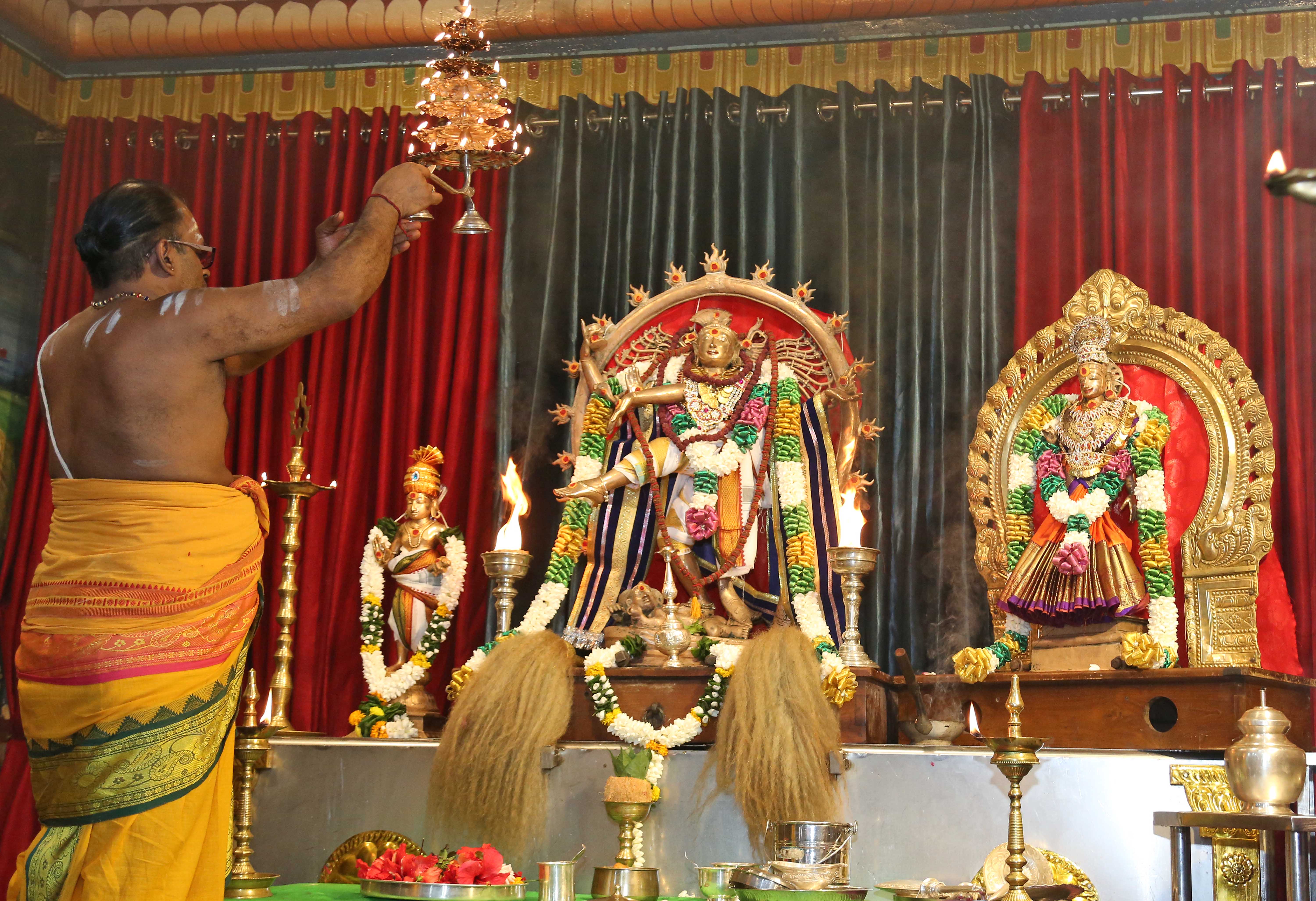 கொழும்பு, கப்பித்தாவத்தை ஸ்ரீ கைலாசநாதர் ஆலயத்தில் நடைபெற்ற திருவெம்பாவை பூஜையின் இறுதி நாளான சனிக்கிழமை (03) அதிகாலை நடைபெற்ற ஆருத்ரா தரிசனத்தின் போது, வசந்த மண்டபத்தில் எழுந்தருளிய சிவகாமசுந்தரி சமேத ஸ்ரீ நடராஜப் பெருமான் அடியார்களுக்கு அருள்பாலித்தார்.