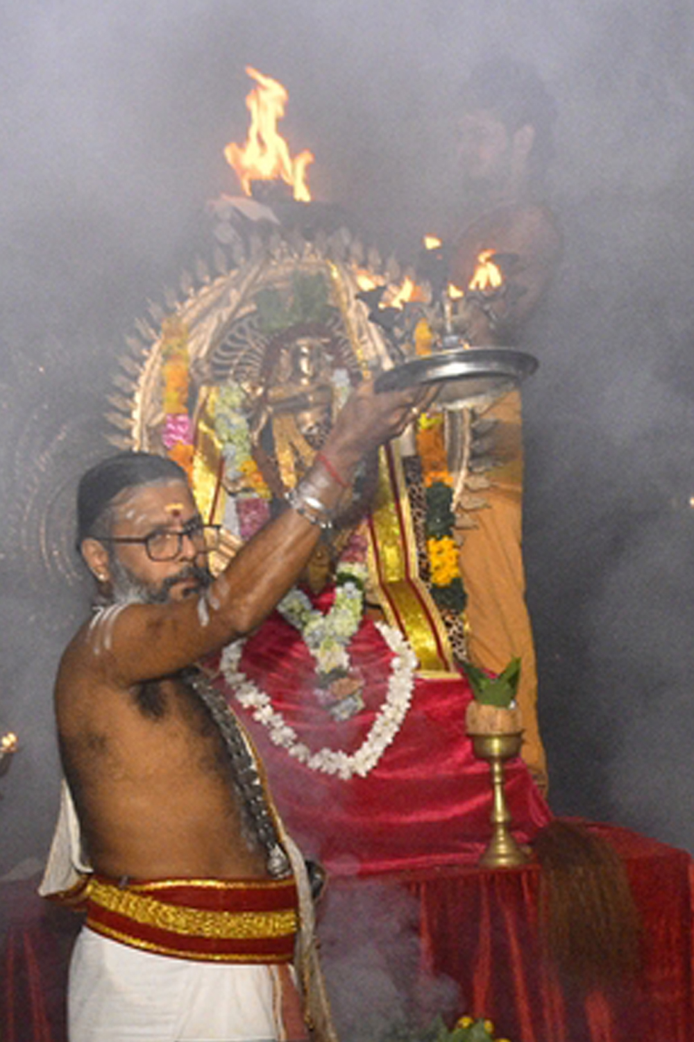 நேற்று அதிகாலை 3.30 மணிக்கு ஸ்ரீ சிவகாமசுந்தரி சமேத நடராஜ பெருமானுக்கு வசந்த மண்டபத்தில் ஆருத்ரா தரிசனம், பசு தீபாராதனை, வசந்த மண்டபத்தில் நடைபெற்று உள்வீதி வலம் வருதல் நிகழ்வும் நடைபெற்றது.