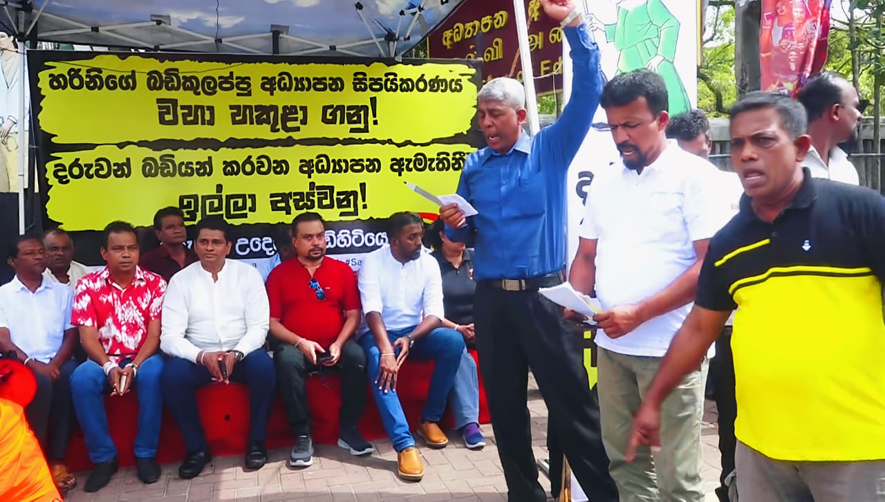 முன்னாள் அமைச்சர் விமல் வீரவன்ச உள்ளிட்ட சிவில் அமைப்புகளின் பிரதிநிதிகள் குழுவால் பிரதமர் ஹரணிக்கு எதிராக பத்தரமுல்லவிலுள்ள கல்வி அமைச்சுக்கு முன்பாக திங்கிட்கிழமை (12) ஆரம்பிக்கப்பட்ட சத்தியாக்கிரக போராட்டமானது தொடர்ந்தும் இரண்டாவது நாளாக இன்று செவ்வாய்க்கிழமை (13) நடைபெற்றுக் கொண்டிருக்கிறது.