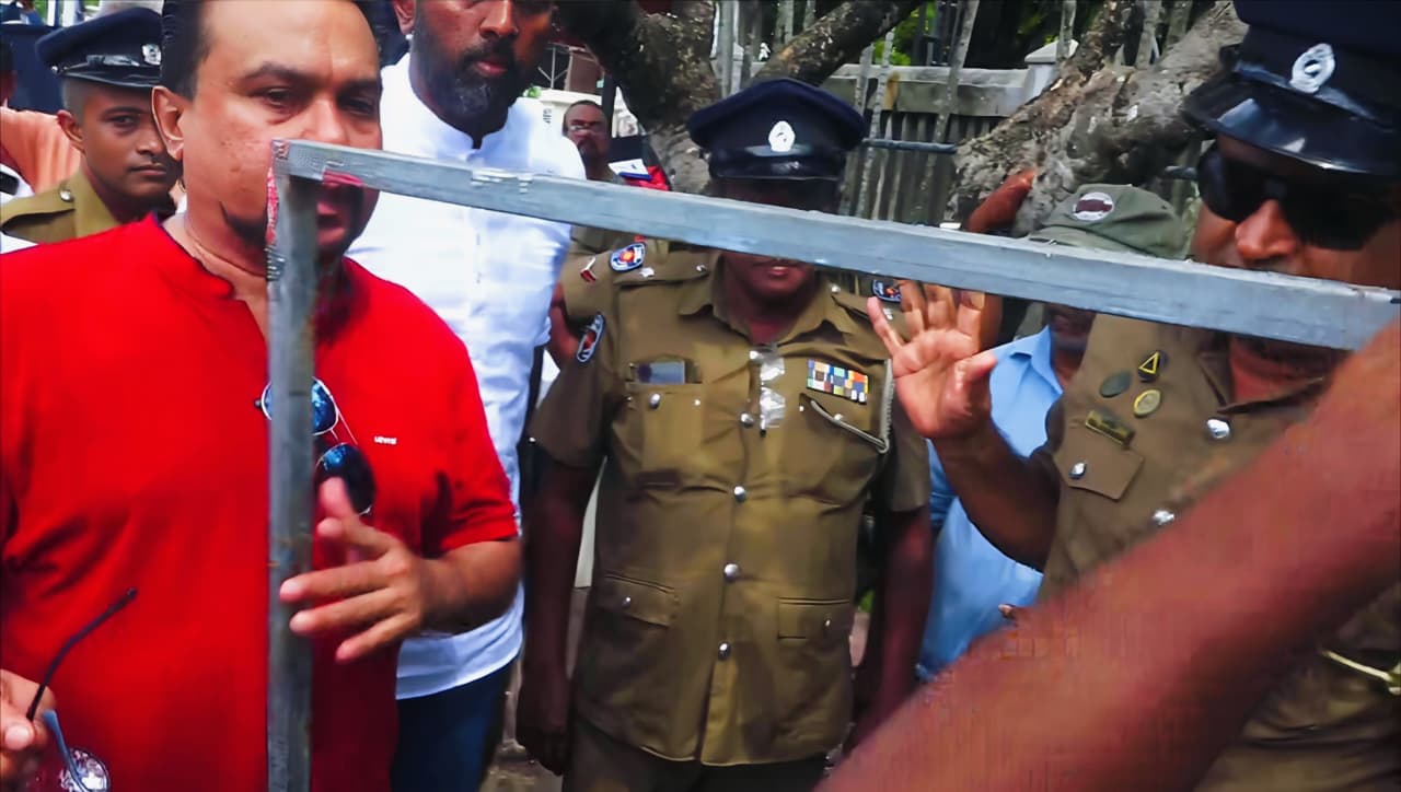 இந்நிலையில், போராட்டக்காரர்கள் கல்வி அமைச்சு வாசலில் கூடாரம் ஒன்றை அமைக்க முற்பட்டபோது பொலிஸார் அதனை தடுத்து நிறுத்தி அப்புறப்படுத்தியதால் அவ்விடத்தில் குழப்ப நிலை ஒன்று தோன்றியது.