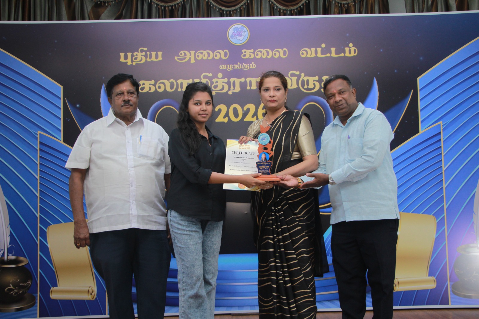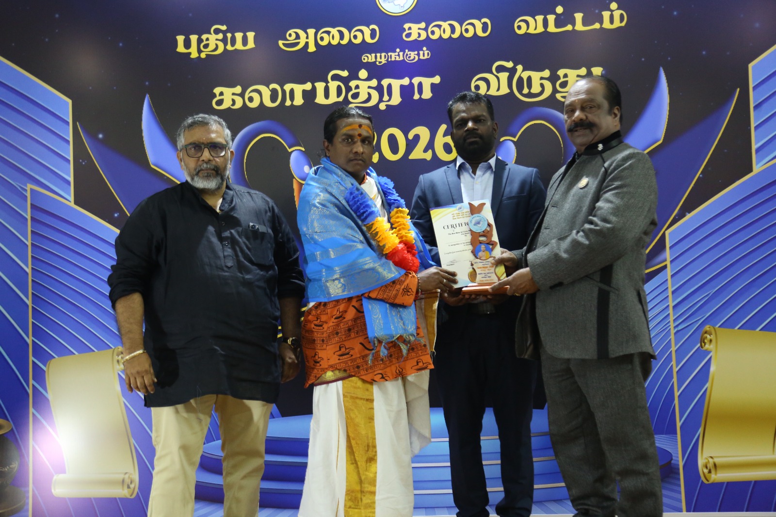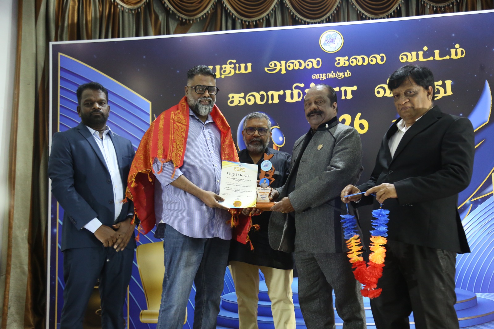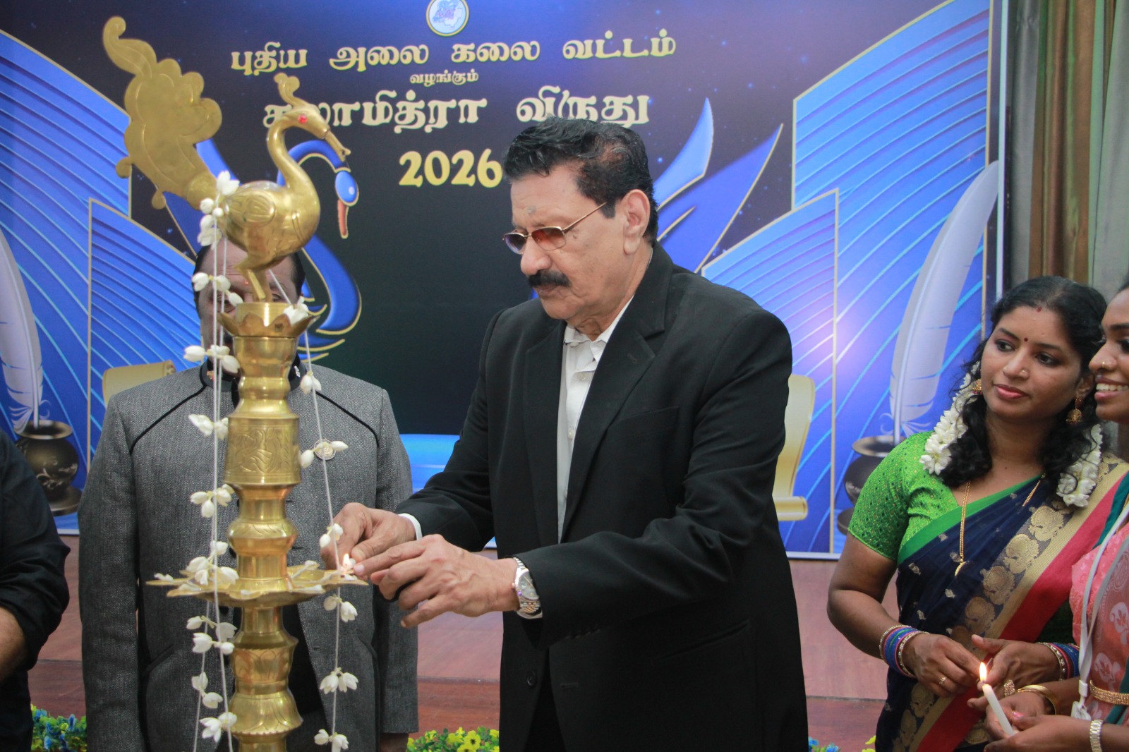 புதிய அலை கலை வட்டம் நடத்திய கலாமித்ரா விருது விழா கடந்த வெள்ளிக்கிழமை (11), செட்டியார் தெருவில் அமைந்துள்ள கல்யாண முருகன் மண்டபத்தில் மாலை இடம்பெற்றது.