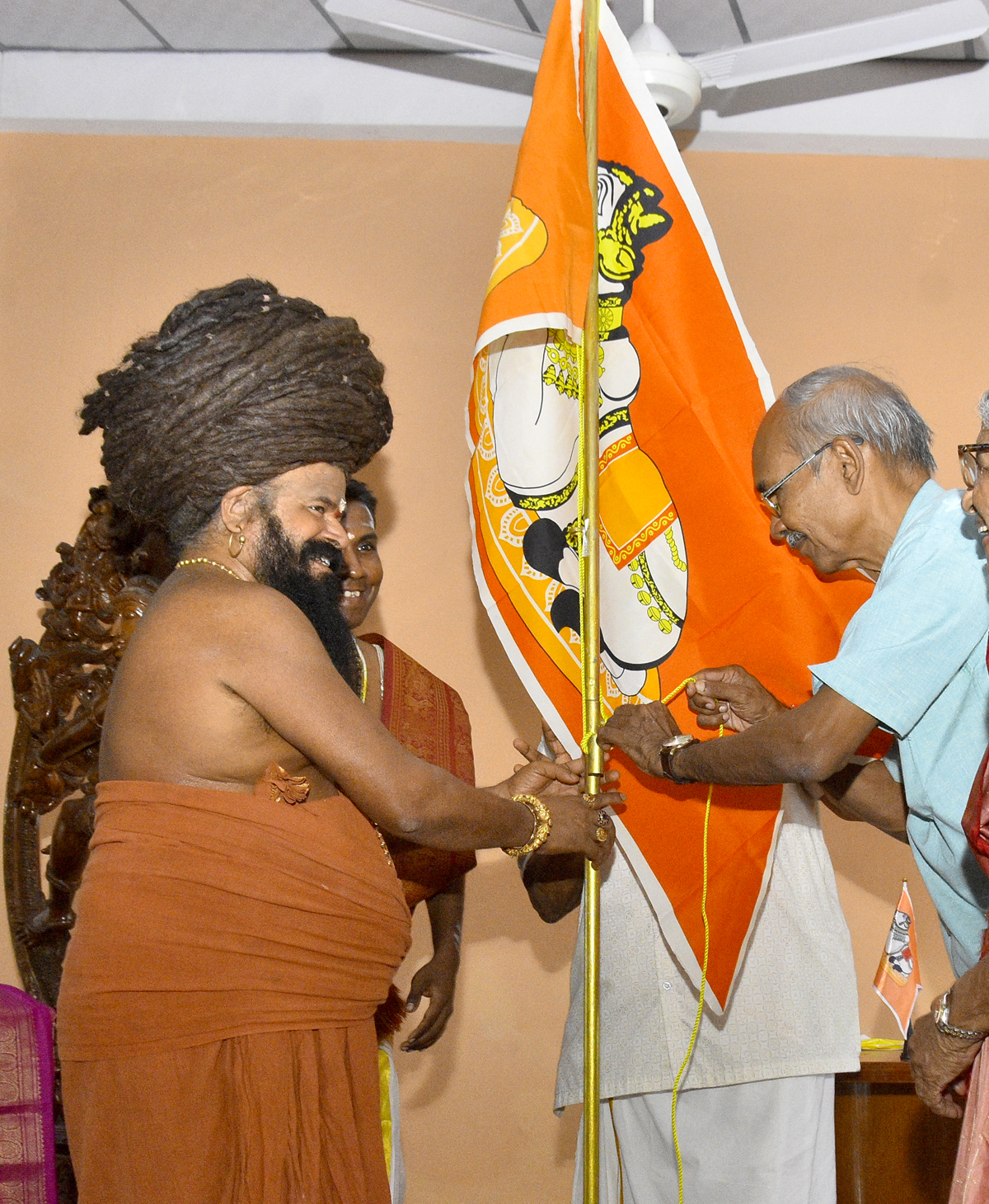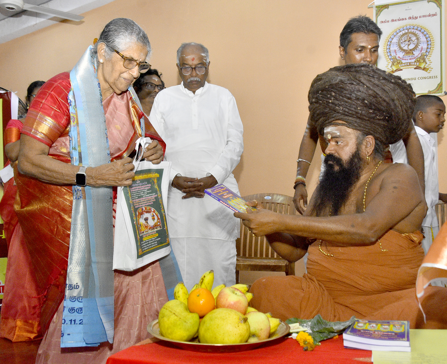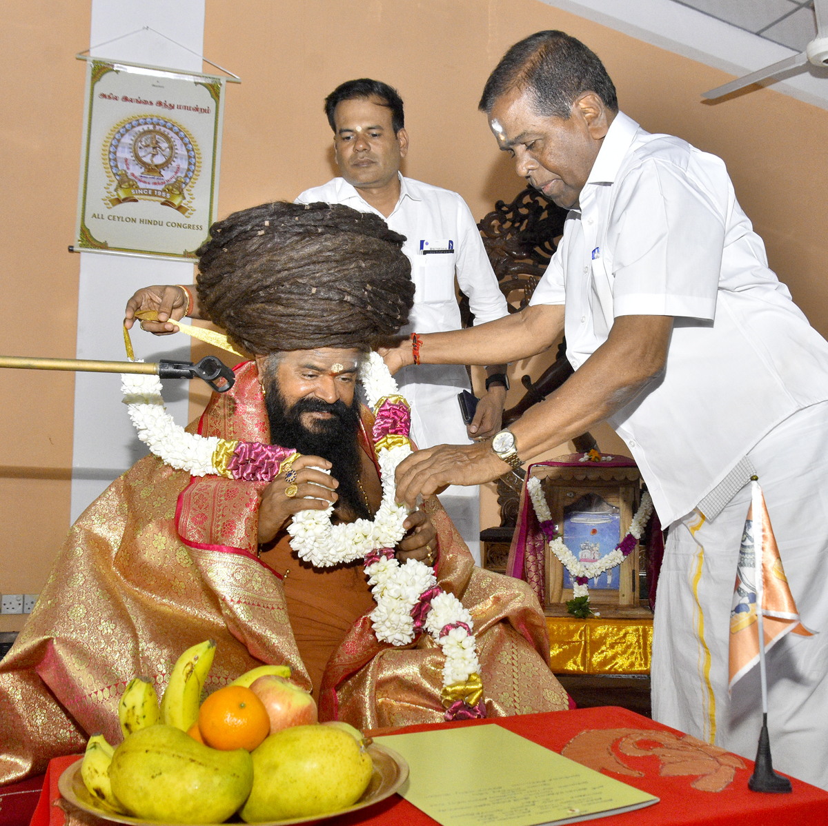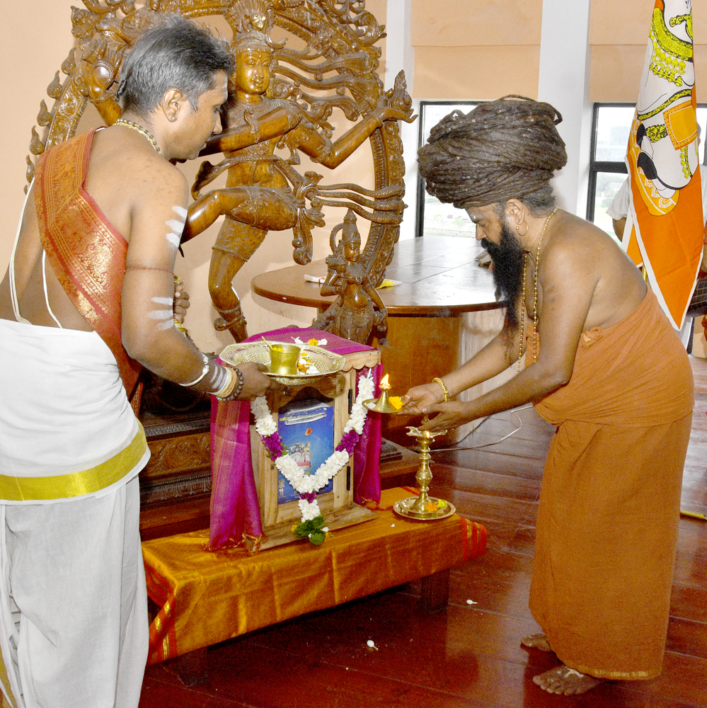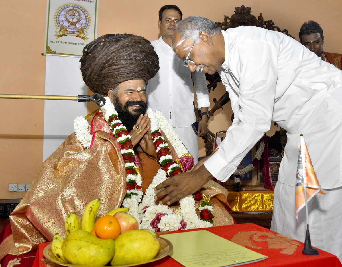 இதனை தொடர்ந்து நந்திக்கொடியை ஏற்றியபின் ஆறுதிருமுருகன், வி. கந்தசாமி இருவரும் சுவாமியை ஆசீர்வதித்து மாலை அணிவிக்கப்பட்டு , தலைவி அபிராமி கைலாசபிள்ளைக்கு பன்னிரு திருமுறை நூலினை வழங்கி வைக்கப்பட்டது.