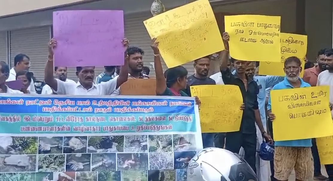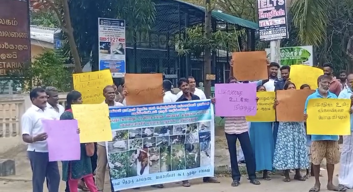 தீவகம் தெற்கு கால்நடை வளர்ப்போர் கூட்டுறவு சங்கத்தினரால் இப்போராடடம் வேலணை வங்களாவடியில் நடைபெற்றது.