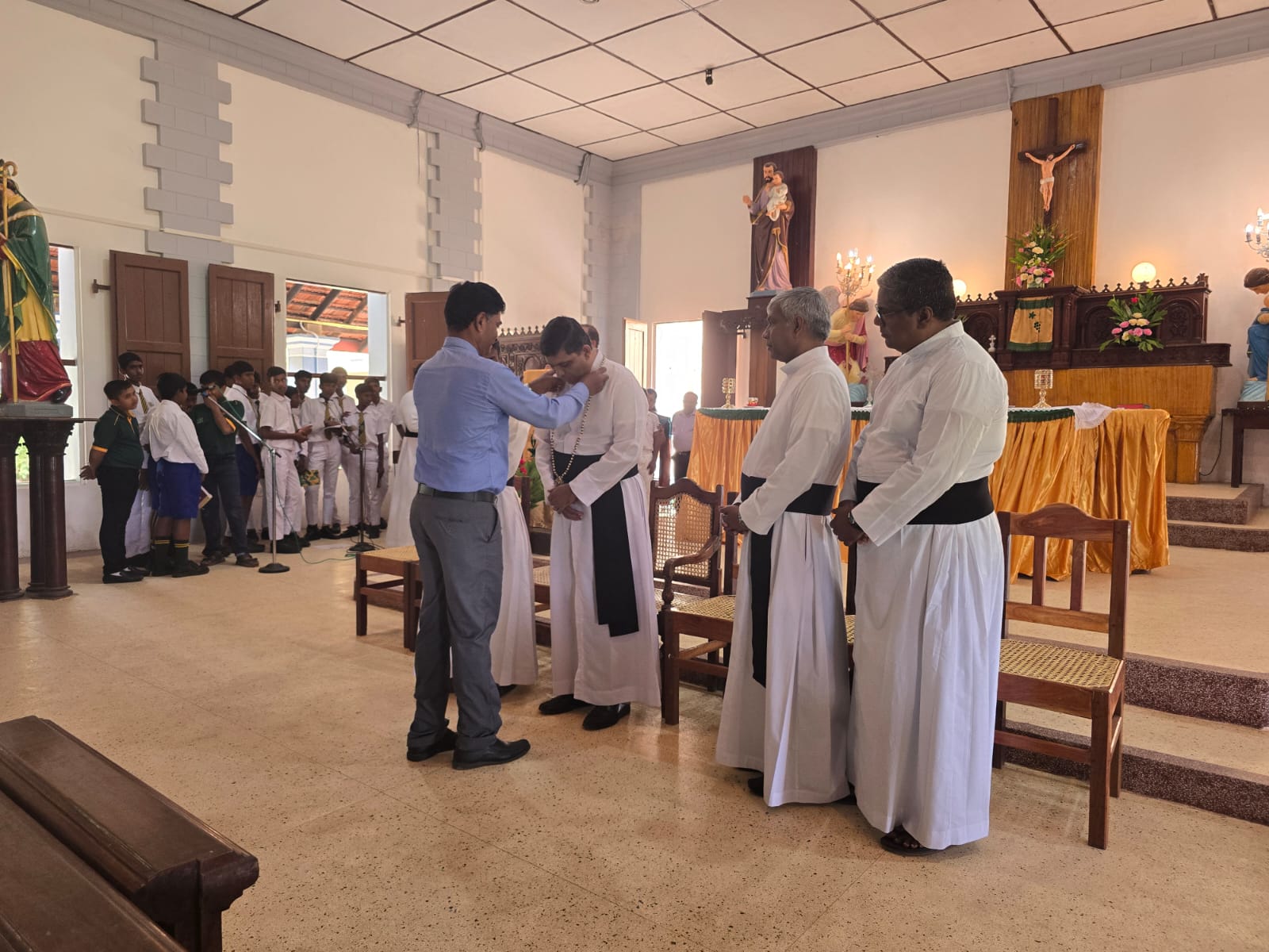 இத் திருப்பலிப் பூசையை கல்லூரி உப அதிபர் அருட்திரு மகான்அலோசியஸ், மடுத்தீனார் சிறிய குருமட அதிபர் செல்வரட்ணம் ,ஒட்டகப்புலம் பங்குத்தந்நை அருட்திரு அருள்தாஸ் அடிகள் அவர்களும், அருட்திரு பிறாயன் சேர்ந்து ஒப்புக்கொடுத்தனர்.
