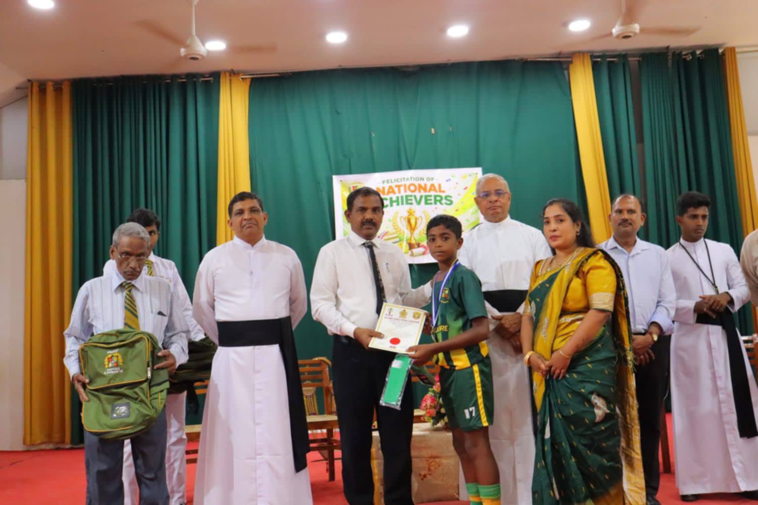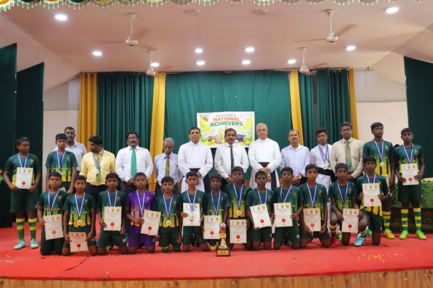 இலங்கைப் பாடசாலைகள் காற்பந்தாட்ட சங்கம் அகில இலங்கை ரீதியில் நடத்திய 14 வயதுப் பிரிவினருக்கான SAMAPOSHA CHAMPION TROPHY கிண்ணத்துக்கான காற்பந்தாட்ட இறுதிப் போட்டியில் இரண்டாம் இடத்தைப் பெற்றுக் கொண்ட யாழ்ப்பாணம் சென் பற்றிக்ஸ் கல்லூரி அணி வீரர்களுக்கு மகத்தான கௌரவிப்பு நிகழ்வு வெள்ளிக்கிழமை (13) சென் பற்றிக்ஸ் கல்லூரி மத்தியூஸ் மண்டபத்தில் கல்லூரி அதிபர் அருட்திரு A P திருமகன் அடிகளார் தலைமையில் நடைபெற்றது.