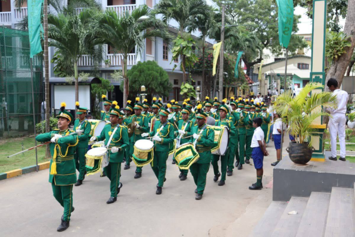 பாண்ட் வாத்தியங்கள் இசைக்கப்பட காற்பந்தாட்ட அணிவீர்கள் பெற்றோருடன் சென் பற்றிக்ஸ் வீதியூடாக அழைத்து வரப்பட்டனர்.